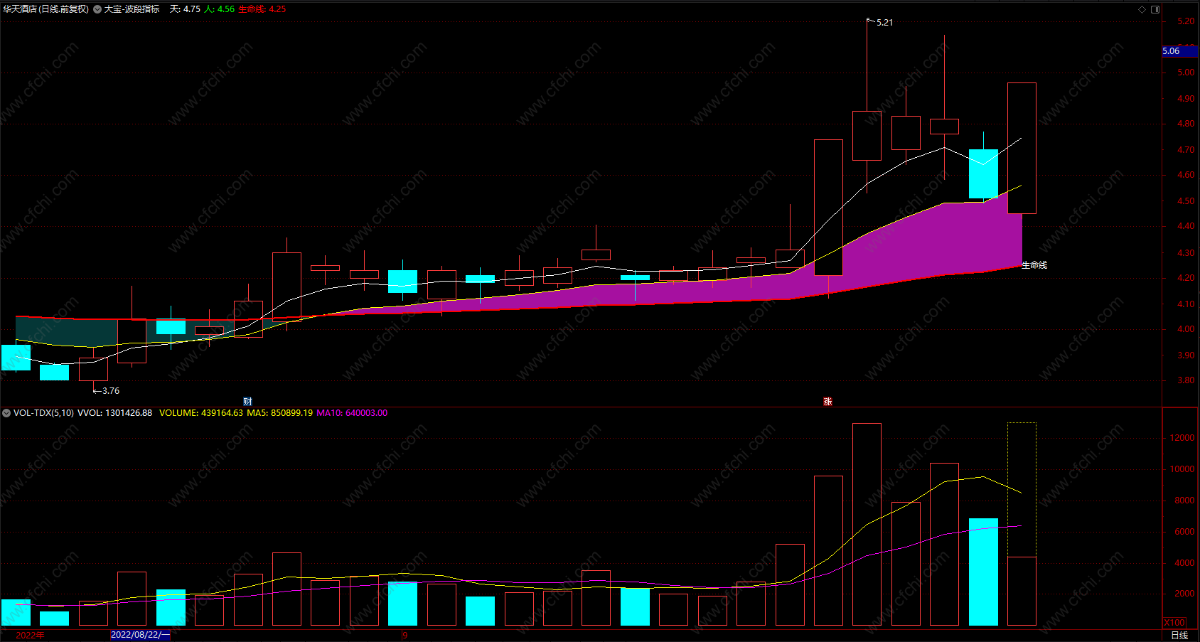 A:=CROSS(天,人) AND V>=REF(V,1) AND DIF>=0 AND 生命线>REF(生命线,1) AND C>O;