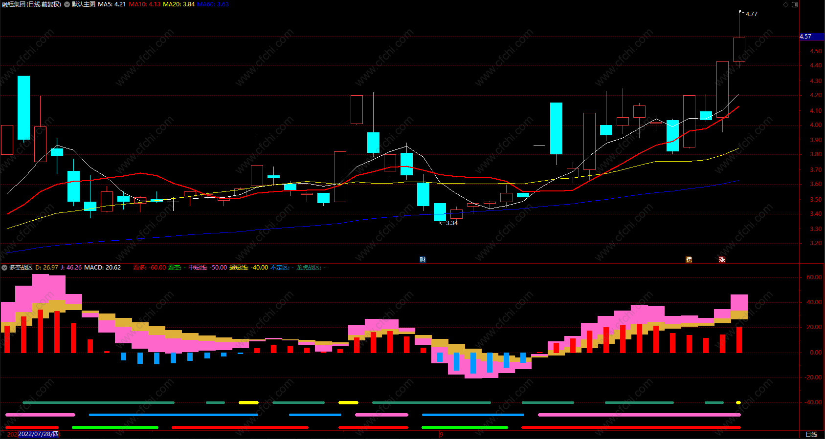(多空战区 通达信股票趋势买卖指标公式 副图 源码)