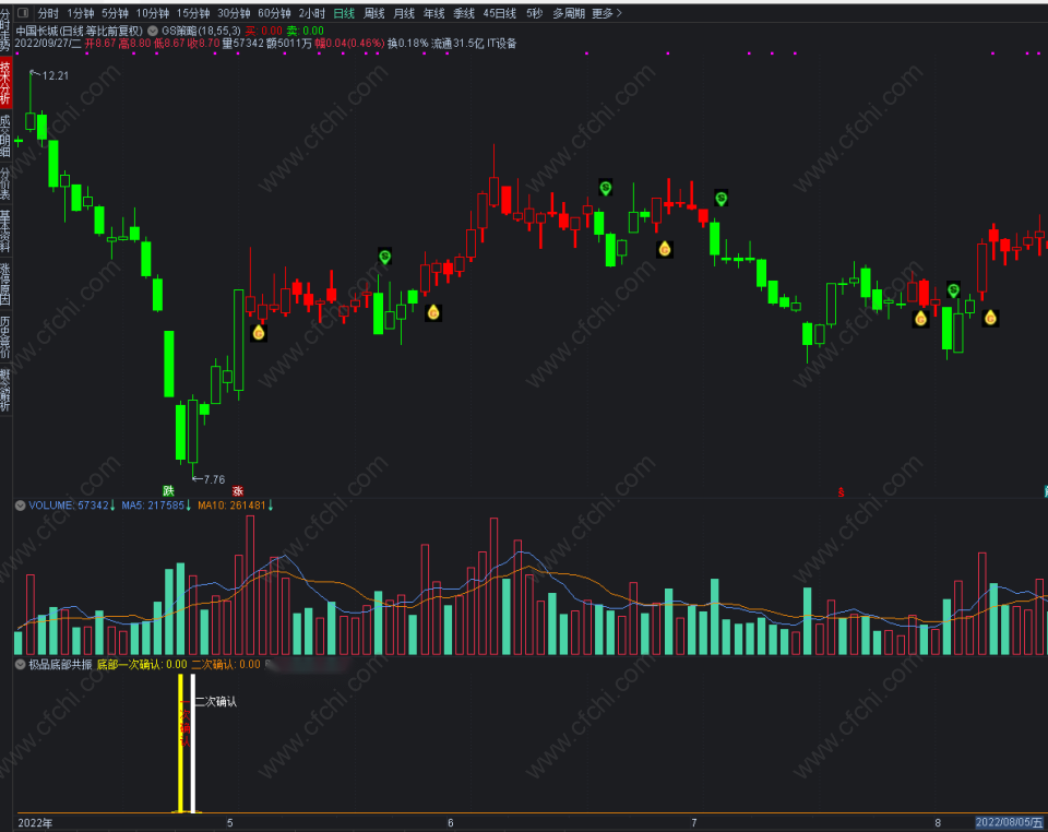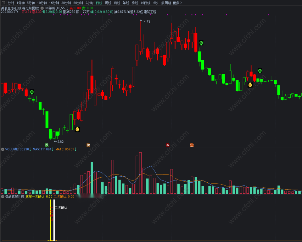 (极品底部二次确认指标,抓底部,高成功率,附图选股指标)