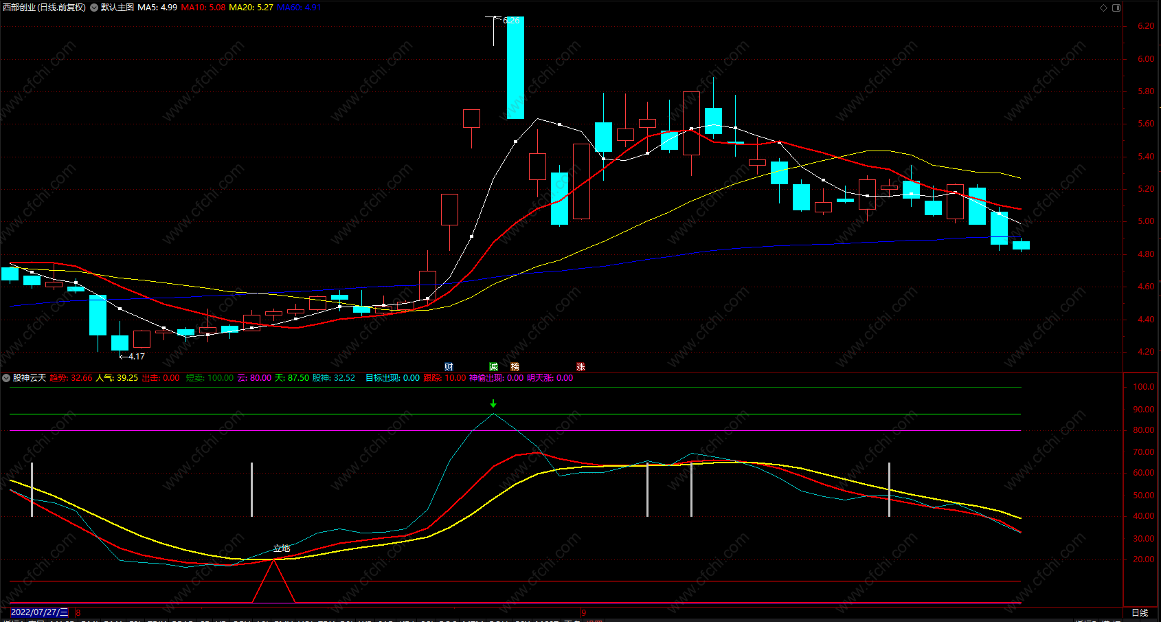 (股神云天 股市趋势通道指标公式 副图 源码)