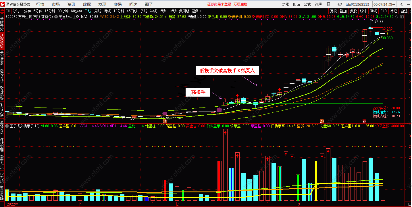 (最新五星级“成交换手量柱”副图开源指标,洞察牛股主力吸筹洗盘拉升出货之换手率变化,助你股海擒牛捉妖!)