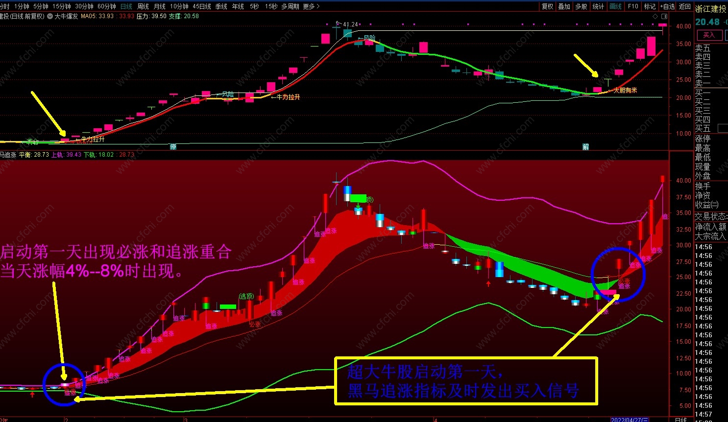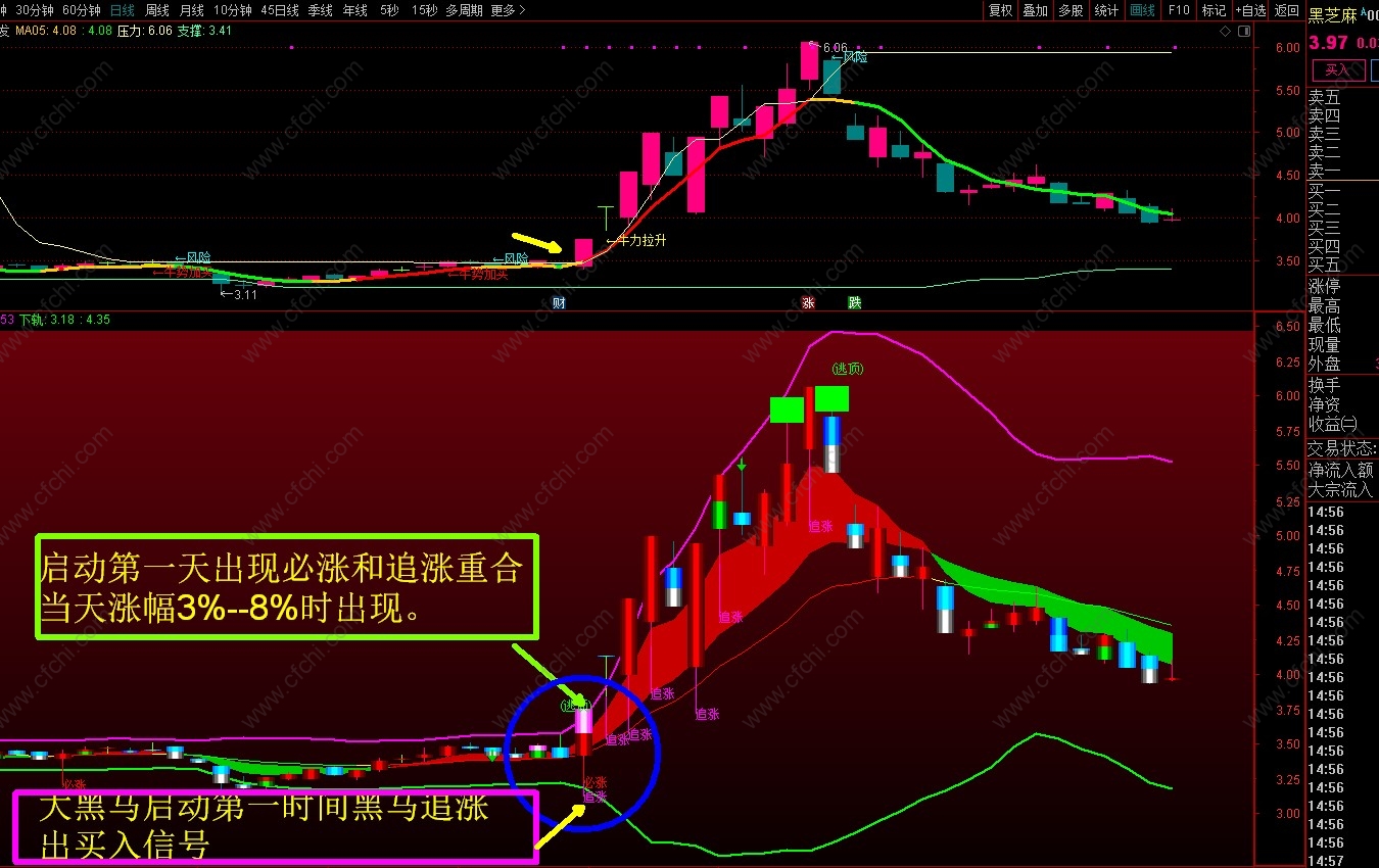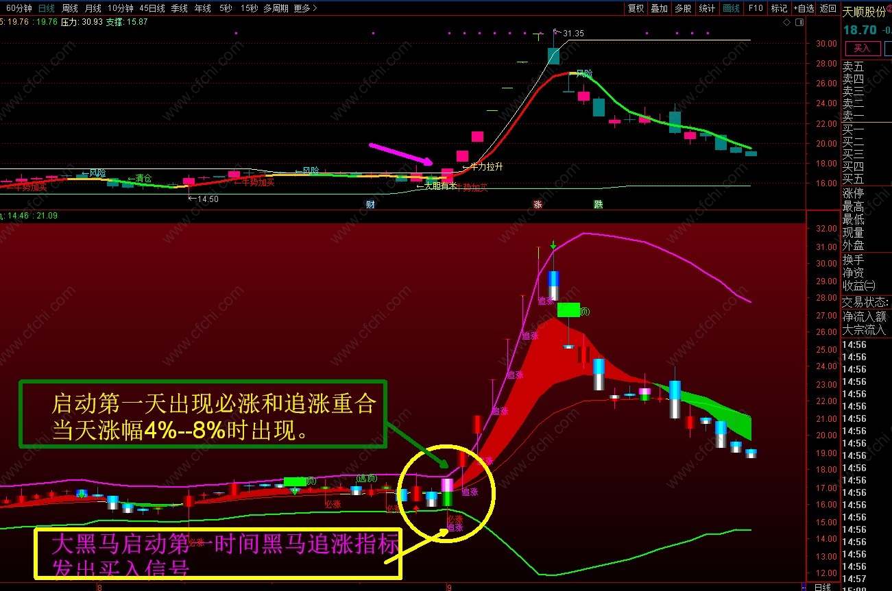 (精品黑马追涨副图指标,把大黑马、大牛股启动第一时间一网打尽!!)