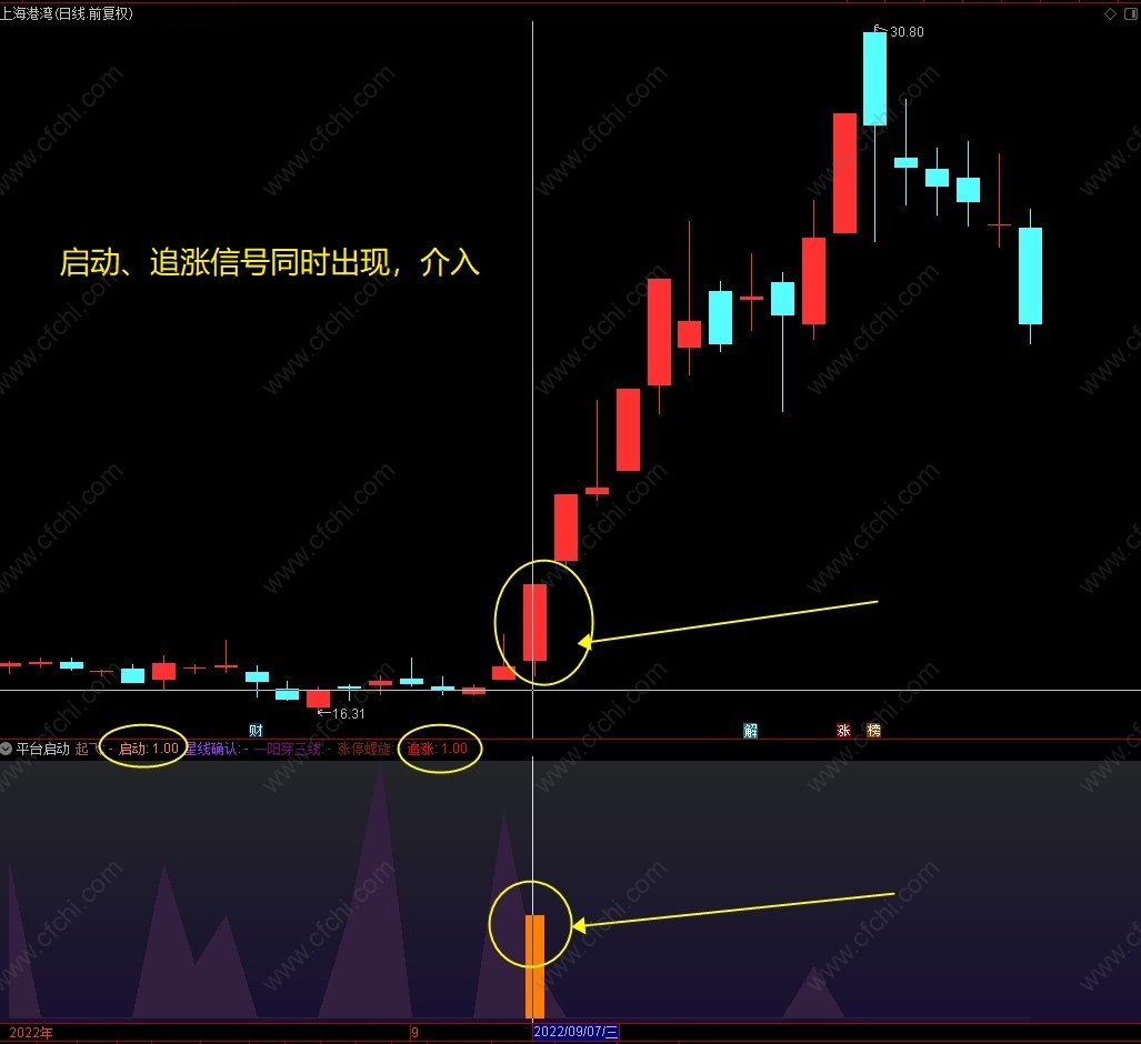 (通达信【平台启动】幅图指标公式,指标当中两个函数出现共振,可能就是大波段盈利!)