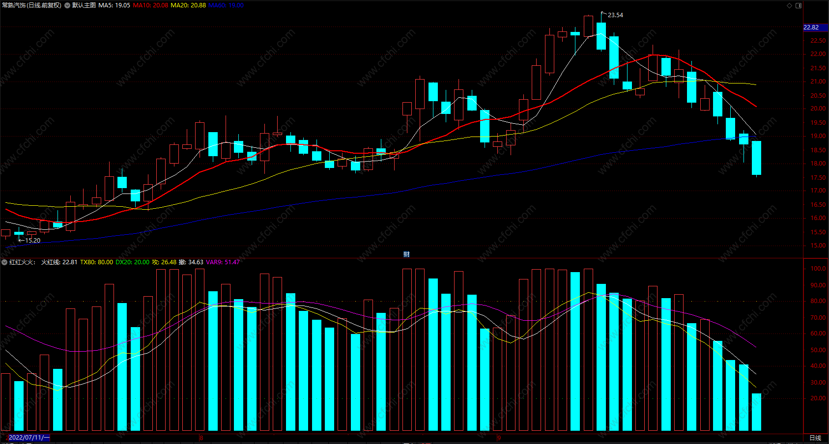 火红线:IF(WINNER(CLOSE),WINNER(CLOSE)*100,20),VOLSTICK;
