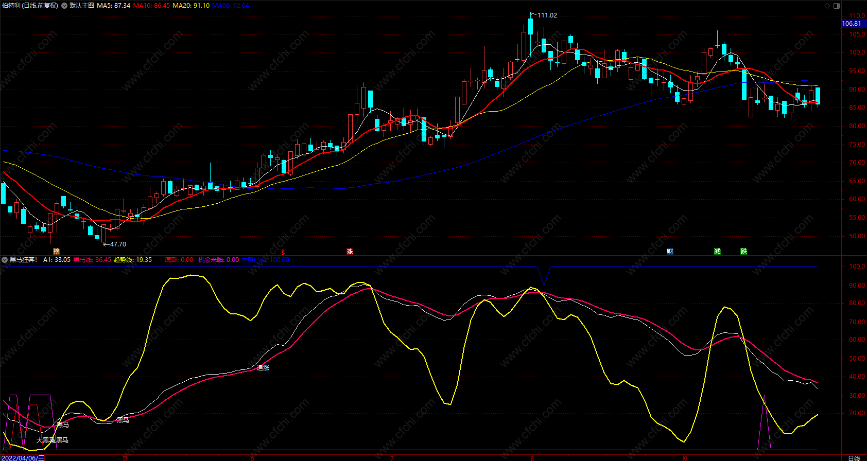 (黑马狂奔 通达信趋势线买入股票副图指标公式 源码)