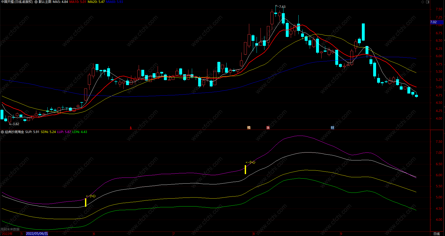 DRAWTEXT (XG,HIGH*1.02,'<-小心'),COLORYELLOW;
