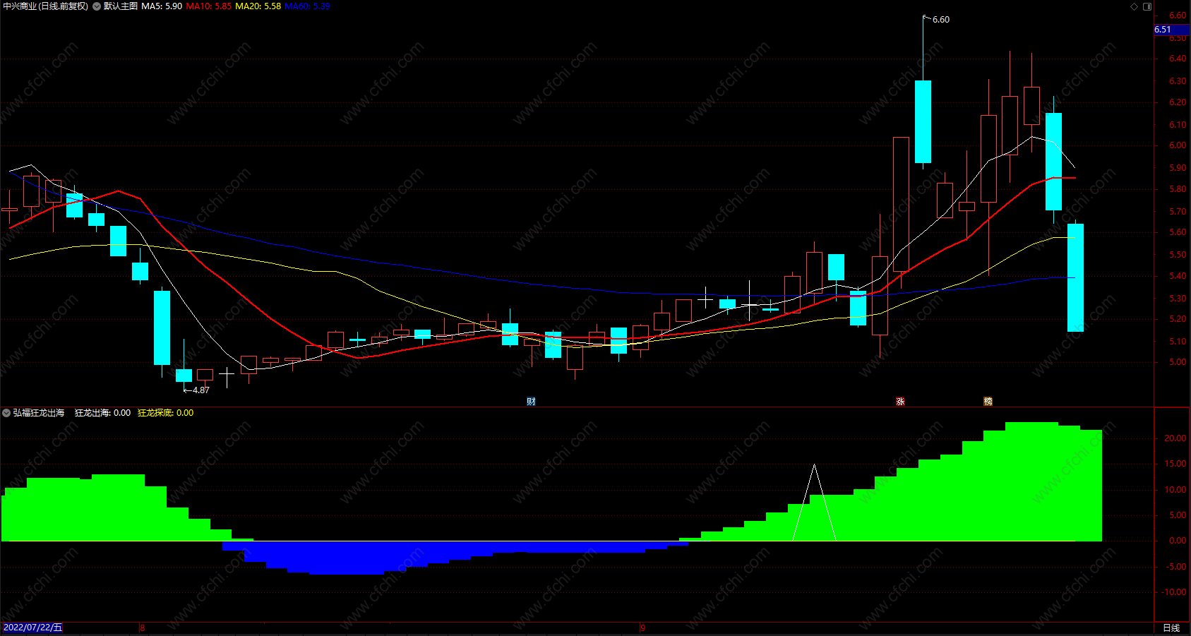(狂龙出海探底 通达信波段趋势变化指标公式副图 源码)