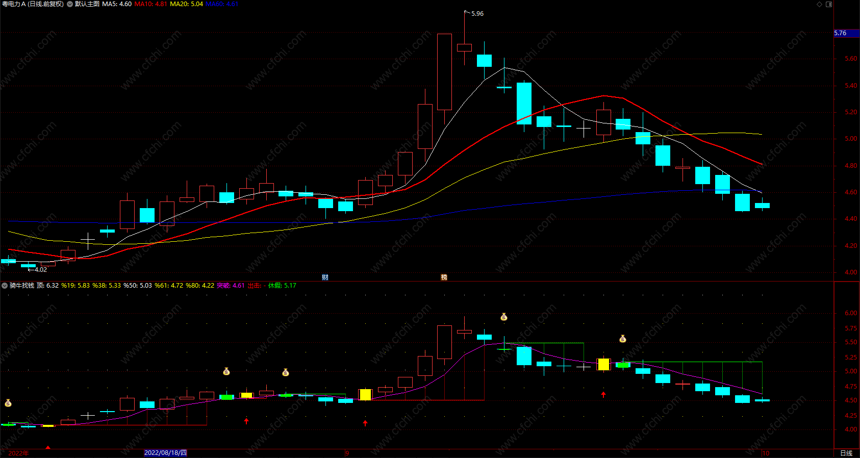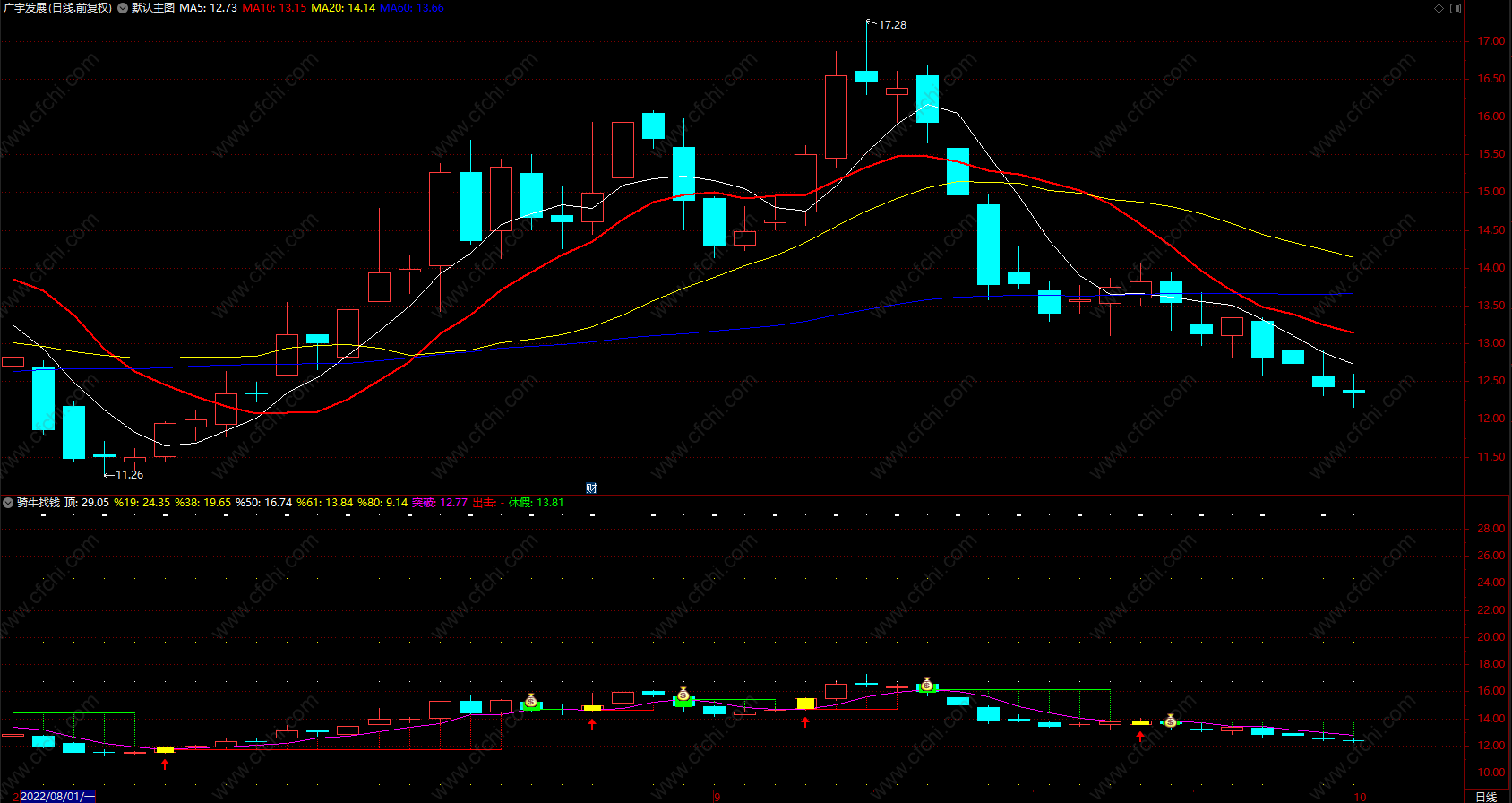 (骑牛找钱 通达信红箭头钱袋子买卖指标副图叠加K线 源码)