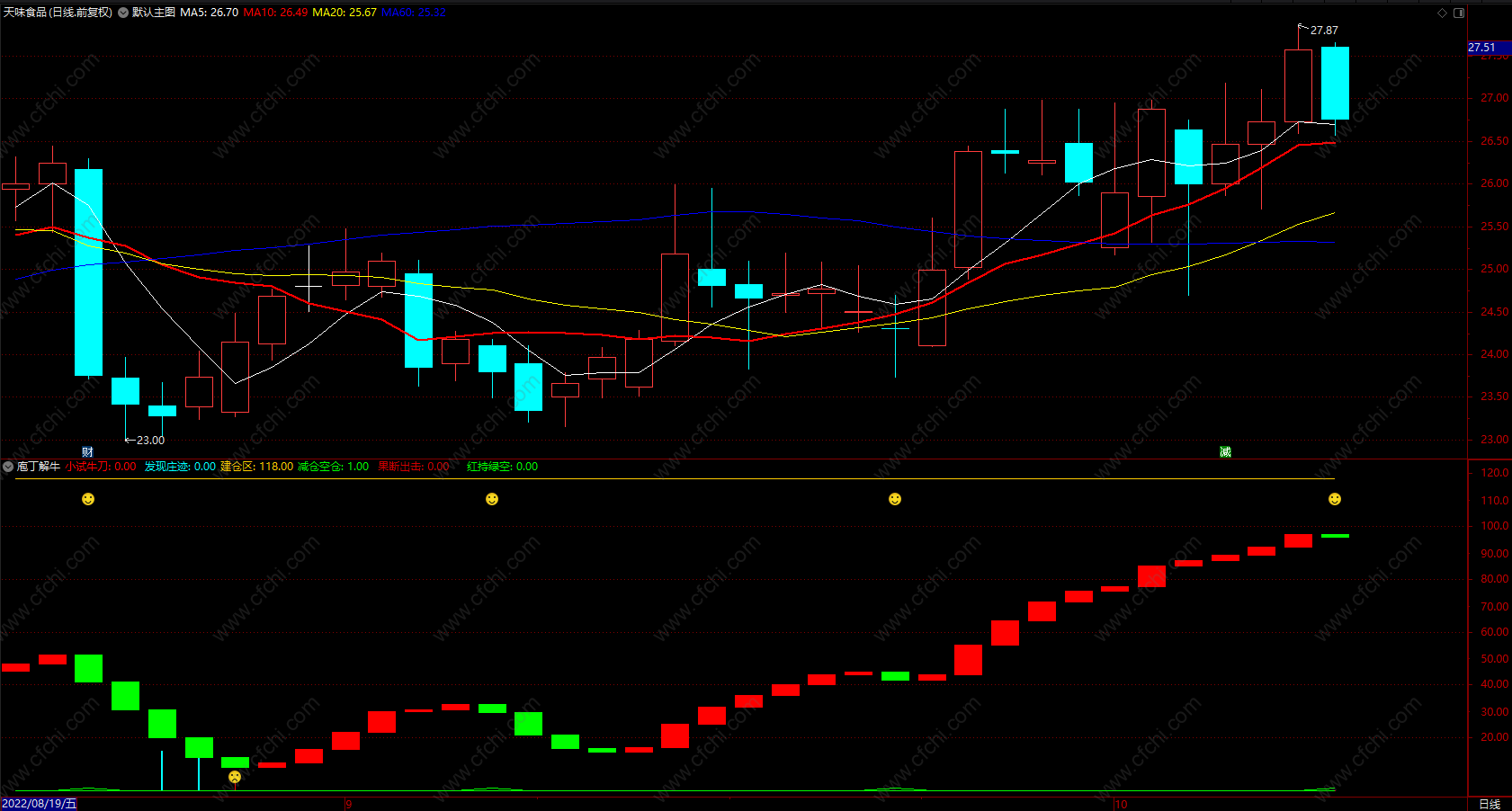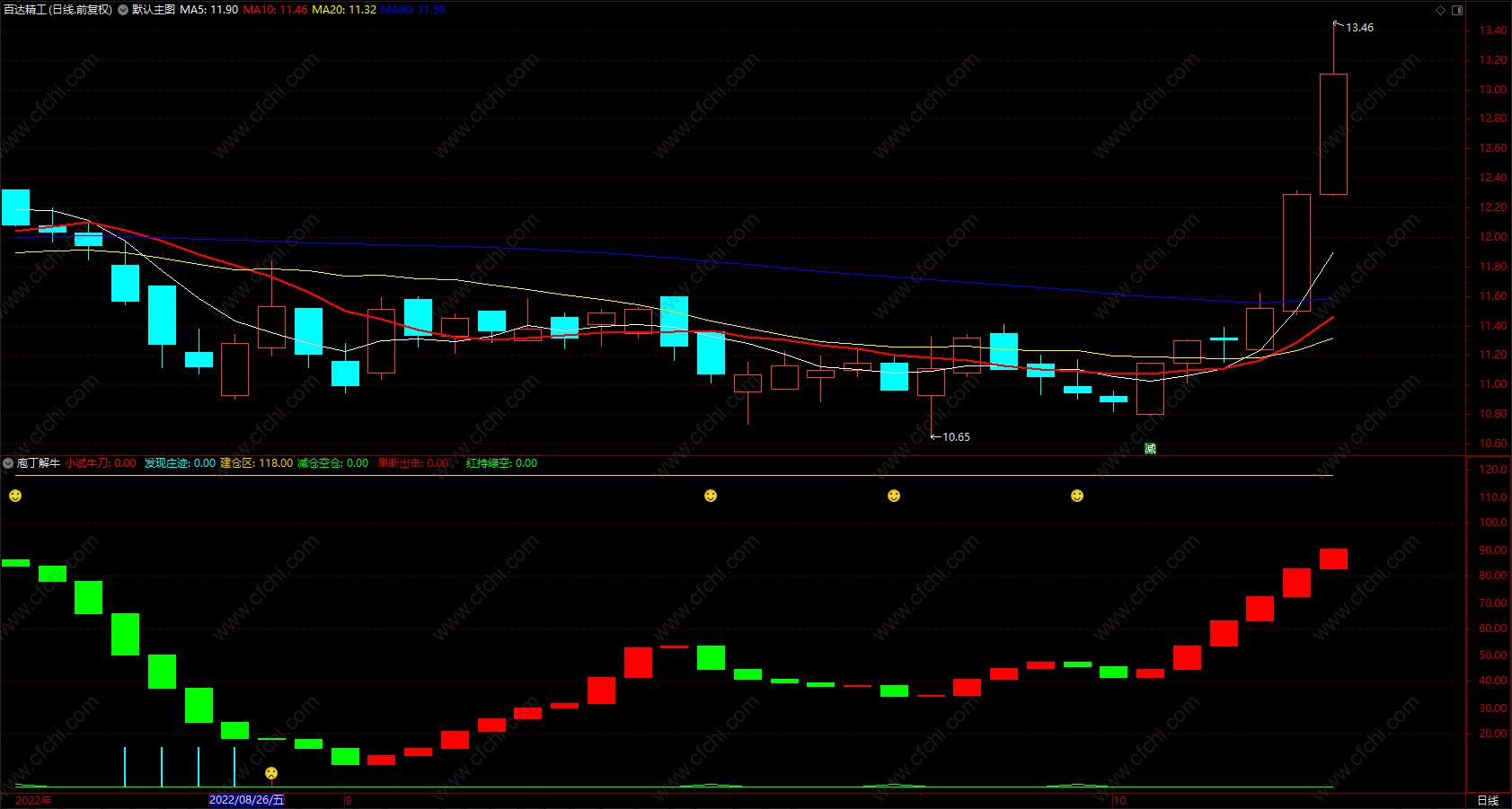 财富池指标公式网(www.cfchi.com)提醒您:指标公式是通过数学逻辑角度编写而来,仅是股票分析环节中的一个辅助工具,对股票选股效率和分析便捷上起到一定的作用,股市是具有不确定性和不可预测性的,请正常对待和使用指标公式!