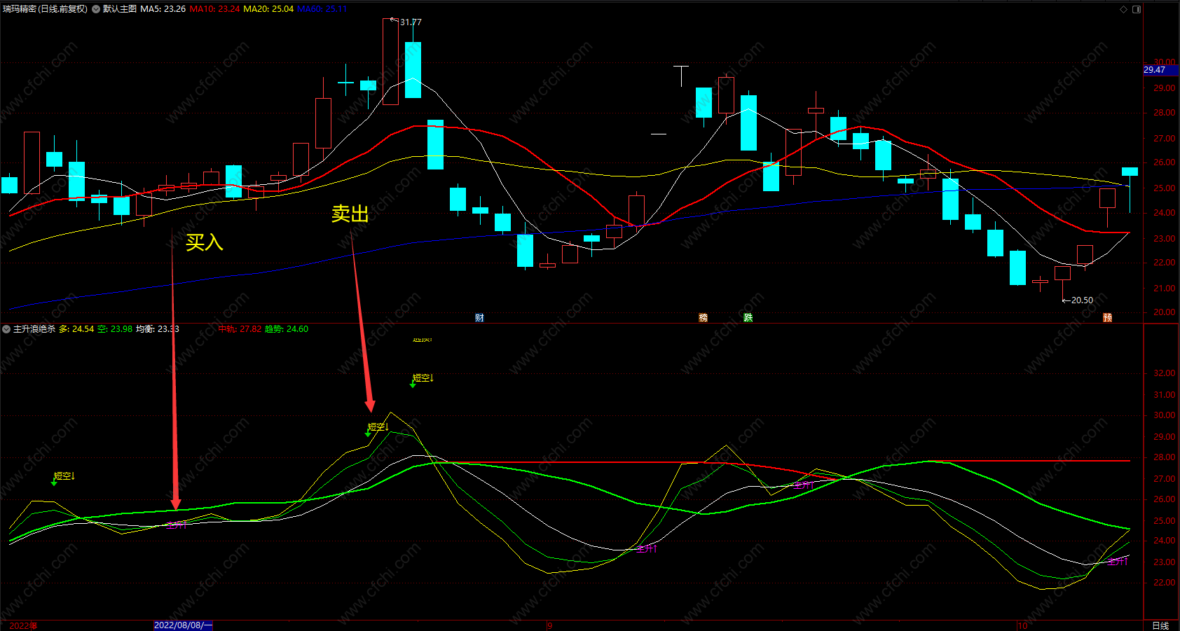 超级主升浪绝杀指标副图无未来函数,信号不漂移,简单好用,有文字提示买卖点,选出的股票加入自定主升浪股票池,根据趋势择机买入,如果是短期强势涨停股,请根据热点,大单成交决定是否买入;
