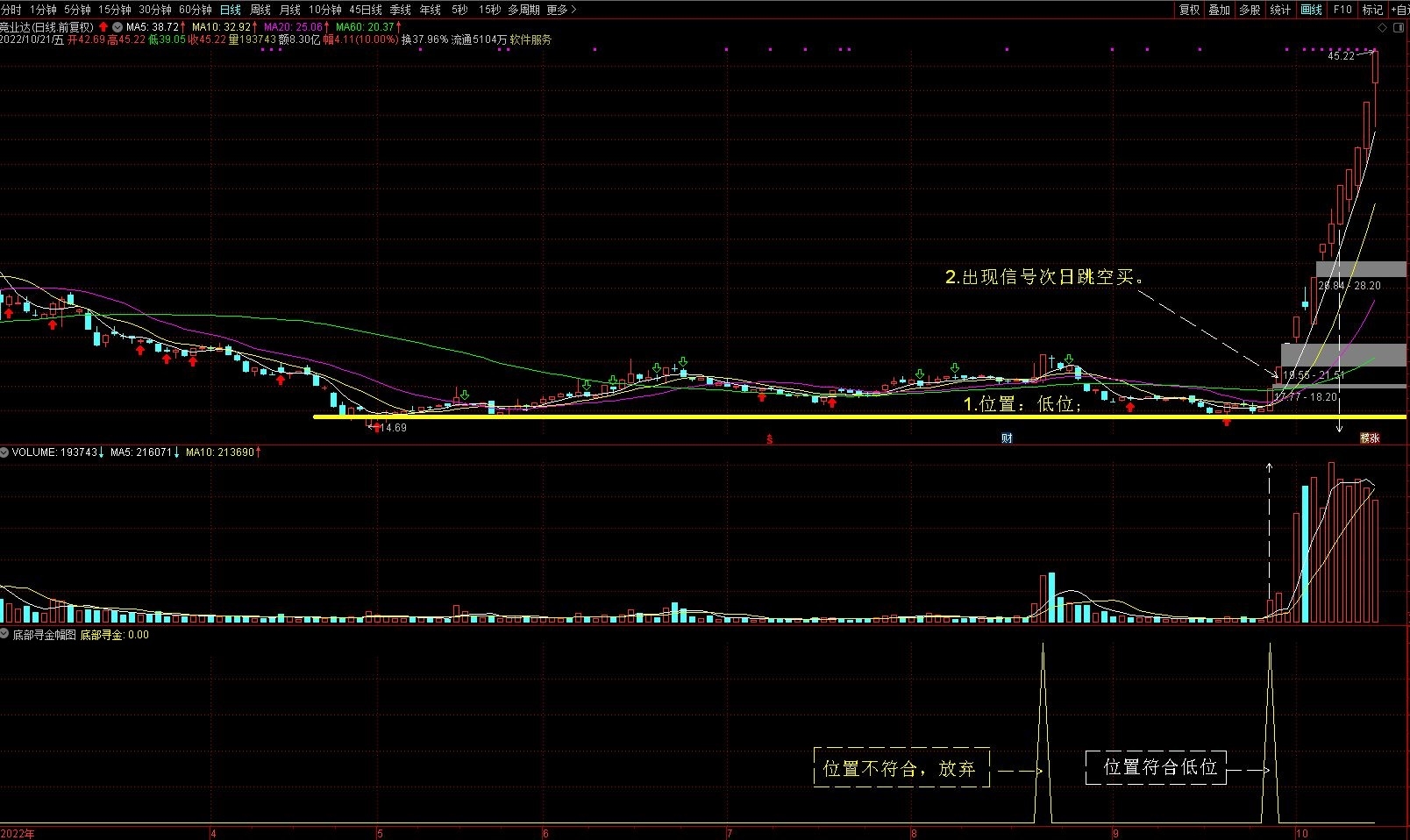 (通达信一套价值不菲的副图指标预警选股器【底部寻金】抓涨停 不放过一大波大牛股!)