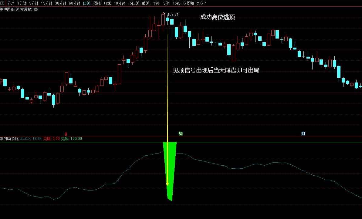 1、出现绿色峰,代表股价进入顶部区域,这是风险信号,逃顶宜急,此时应迅速减仓或出局!