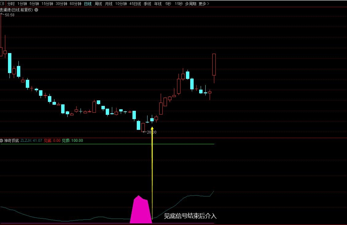 2、出现粉色峰,代表股价进入底部区域,此时为筑底信号,不是抄底信号!出现粉色峰后,股价还有可能继续下行,抄底宜缓,应耐心观察,等待粉色峰消失,此时方可进场。切记不可急于中途抄底,否则有可能抄在半山腰。