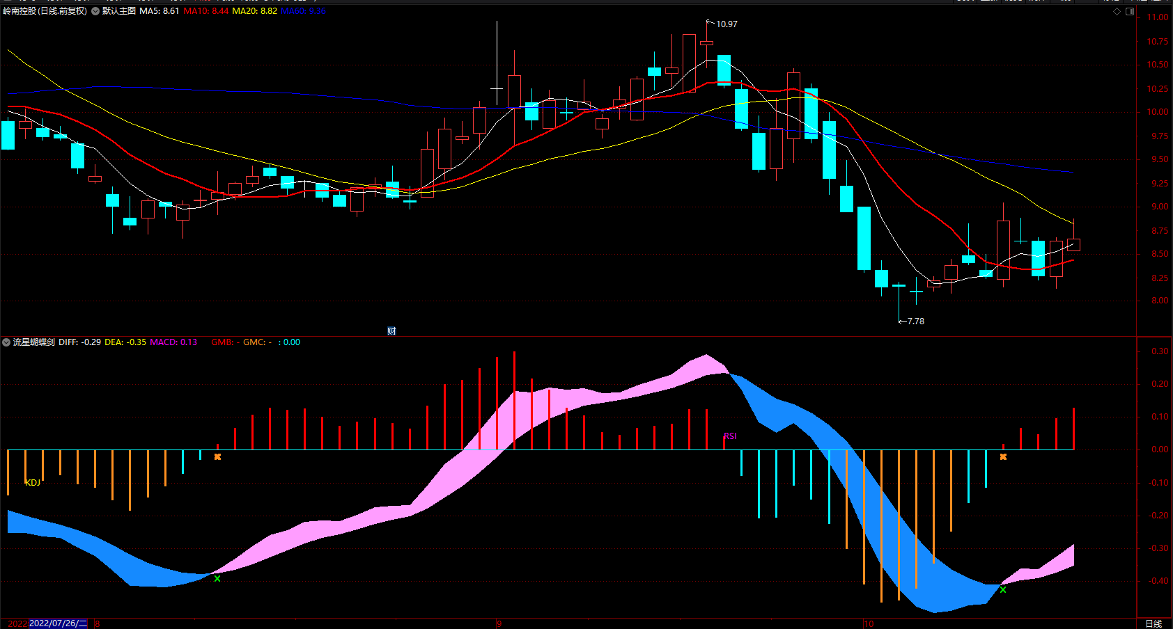 通达信流星蝴蝶剑趋势macd波段指标 副图 源码 无未来