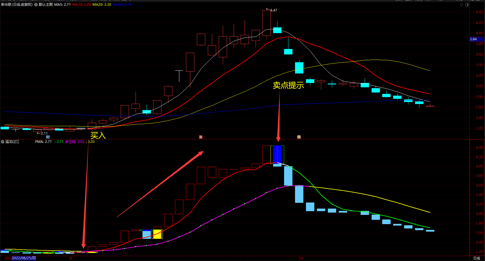 通达信猛龙过江趋势信号明确副图 多空买卖提示指标 源码 无未来