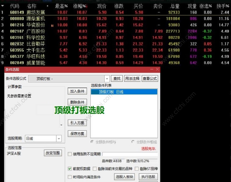 使用方法:当天收盘选股,第二天开盘后,按涨副排序,打板标地必须在9.50左右拉板,拉板时跟进!