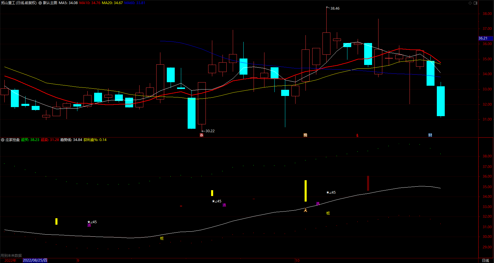 (庄家控盘超买超卖 通达信趋势线追涨提示指标 副图 源码)