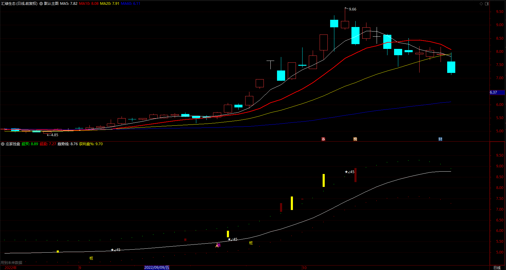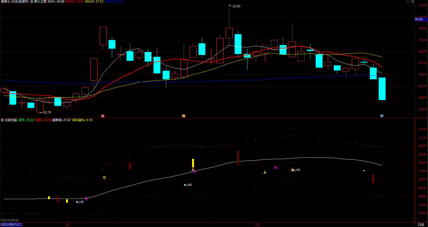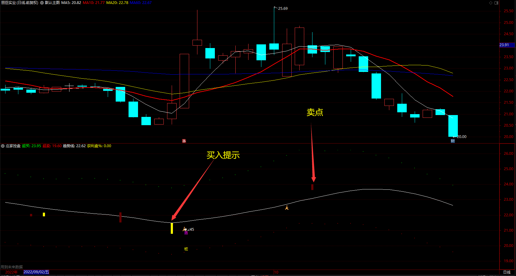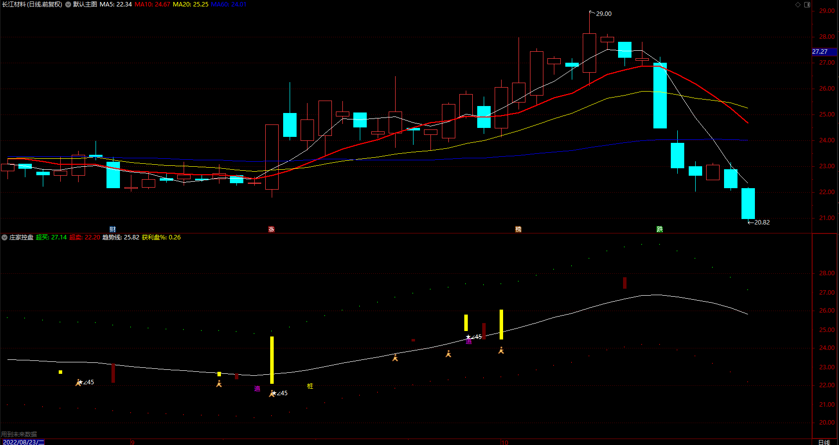 庄家控盘超买超卖 通达信趋势线追涨提示指标 副图 源码