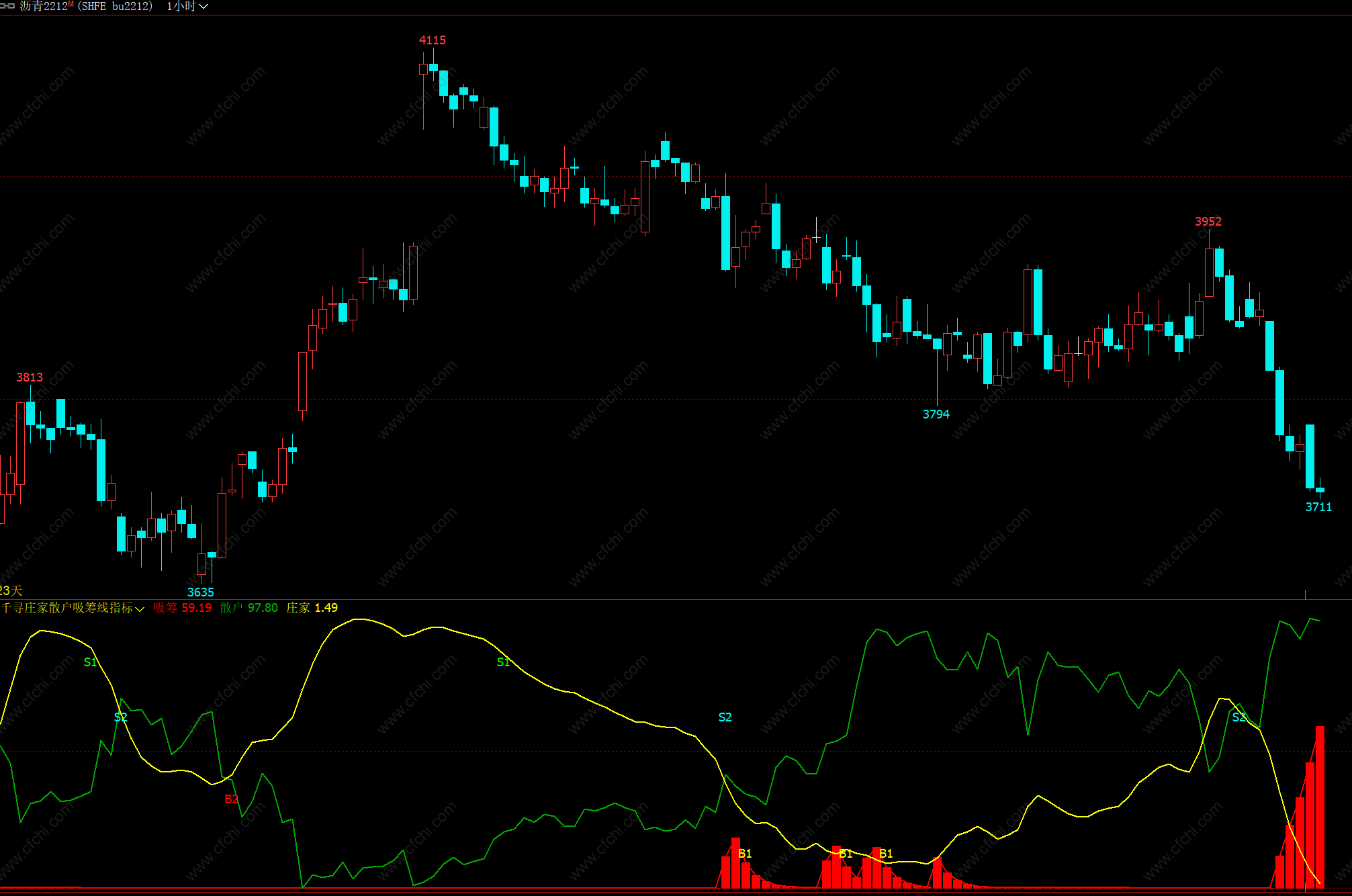 (【庄家散户吸筹指标】文华期货指标公式大全 文华期货幅图指标 文华财经主图公式源码 期货指标)