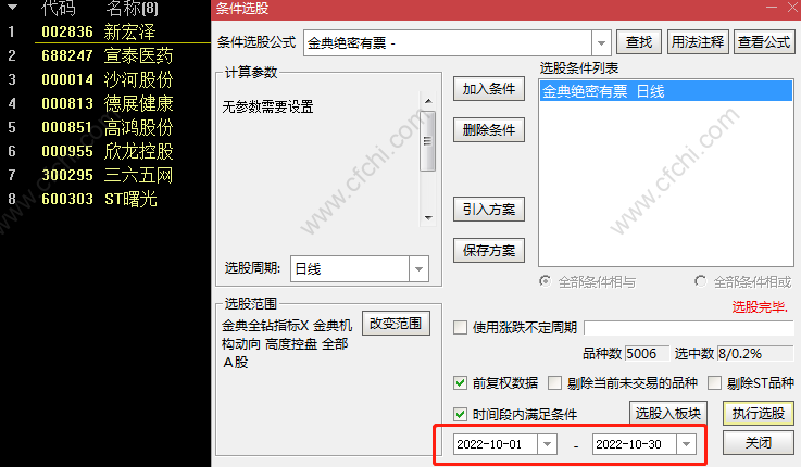 财富池指标公式网(www.cfchi.com)提醒您:指标公式是通过数学逻辑角度编写而来,仅是股票分析环节中的一个辅助工具,对股票选股效率和分析便捷上起到一定的作用,股市是具有不确定性和不可预测性的,请正常对待和使用指标公式!