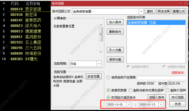 指标涉及CAPITAL(当前流通股本)DYNAINFO(涨幅)和FINANCE(流通市值)函数,这些都是即时发生了的数据。盘后选股不属于未来函数!