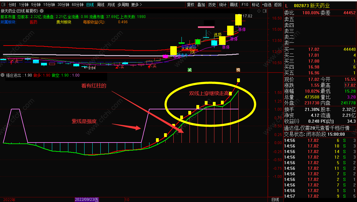 操作也简单:紫色线代表个股强度,红柱代表做多;白色控盘能量。