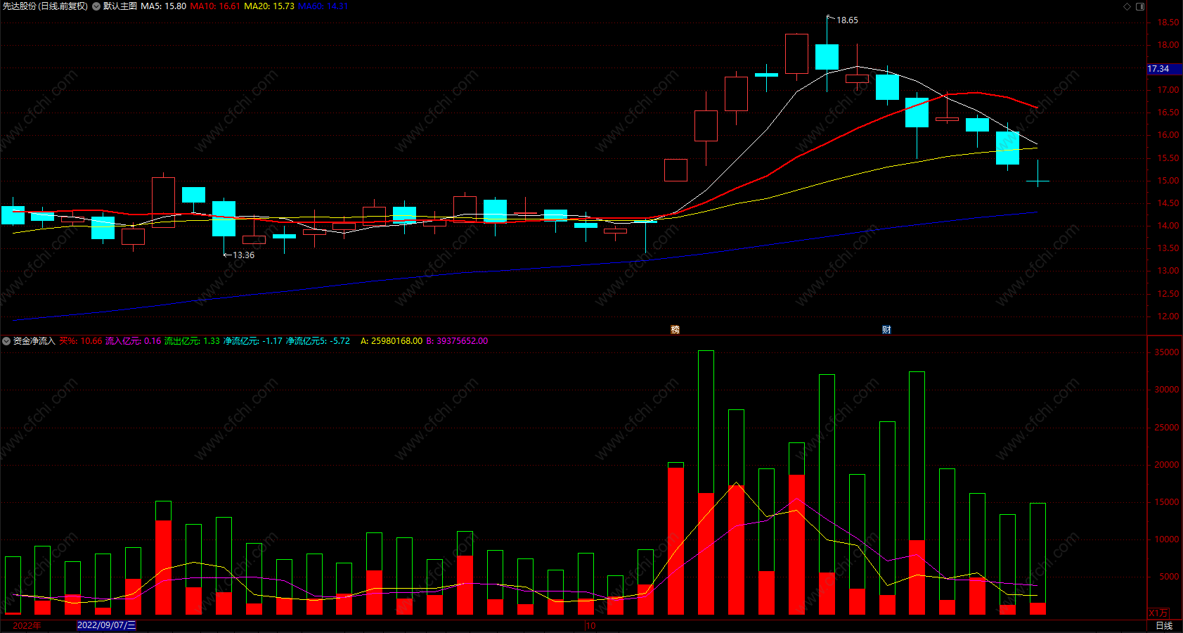 净流亿元5:SUM(流入亿元-流出亿元,5),COLORCYAN,NODRAW;