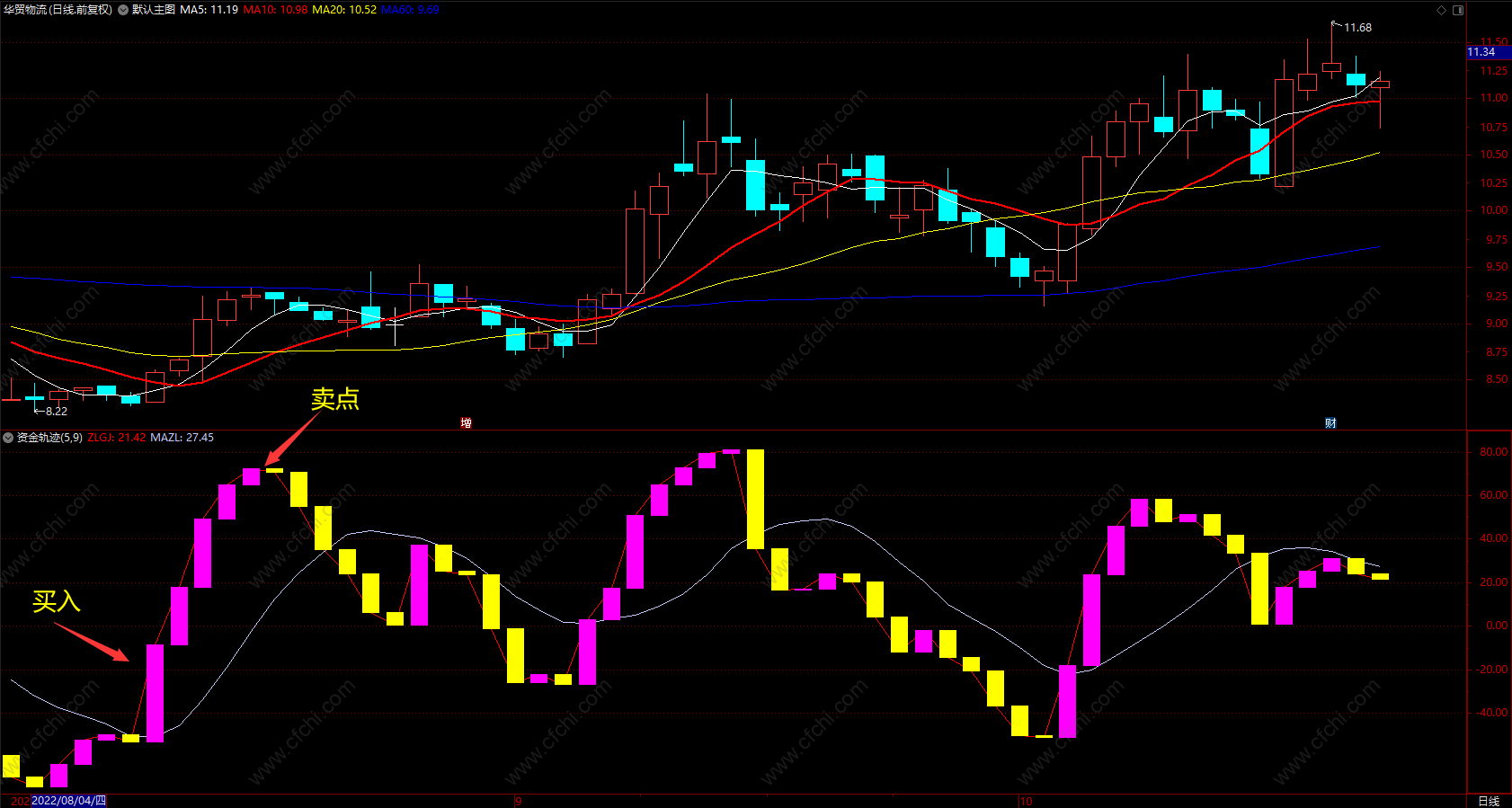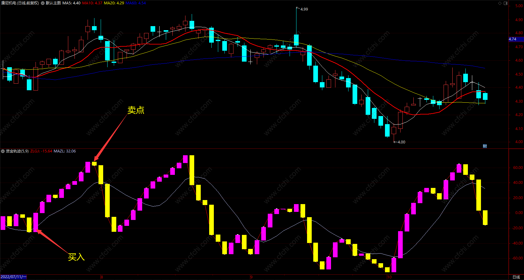 (资金轨迹 通达信股票大资金买卖在指标 副图 源码)