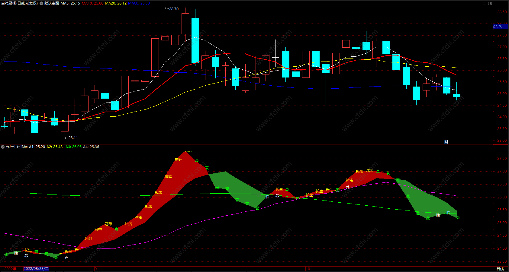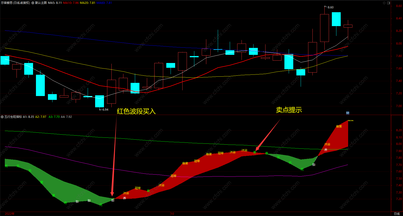 五行生旺指标 通达信红绿波段买卖指标公式 副图 源码