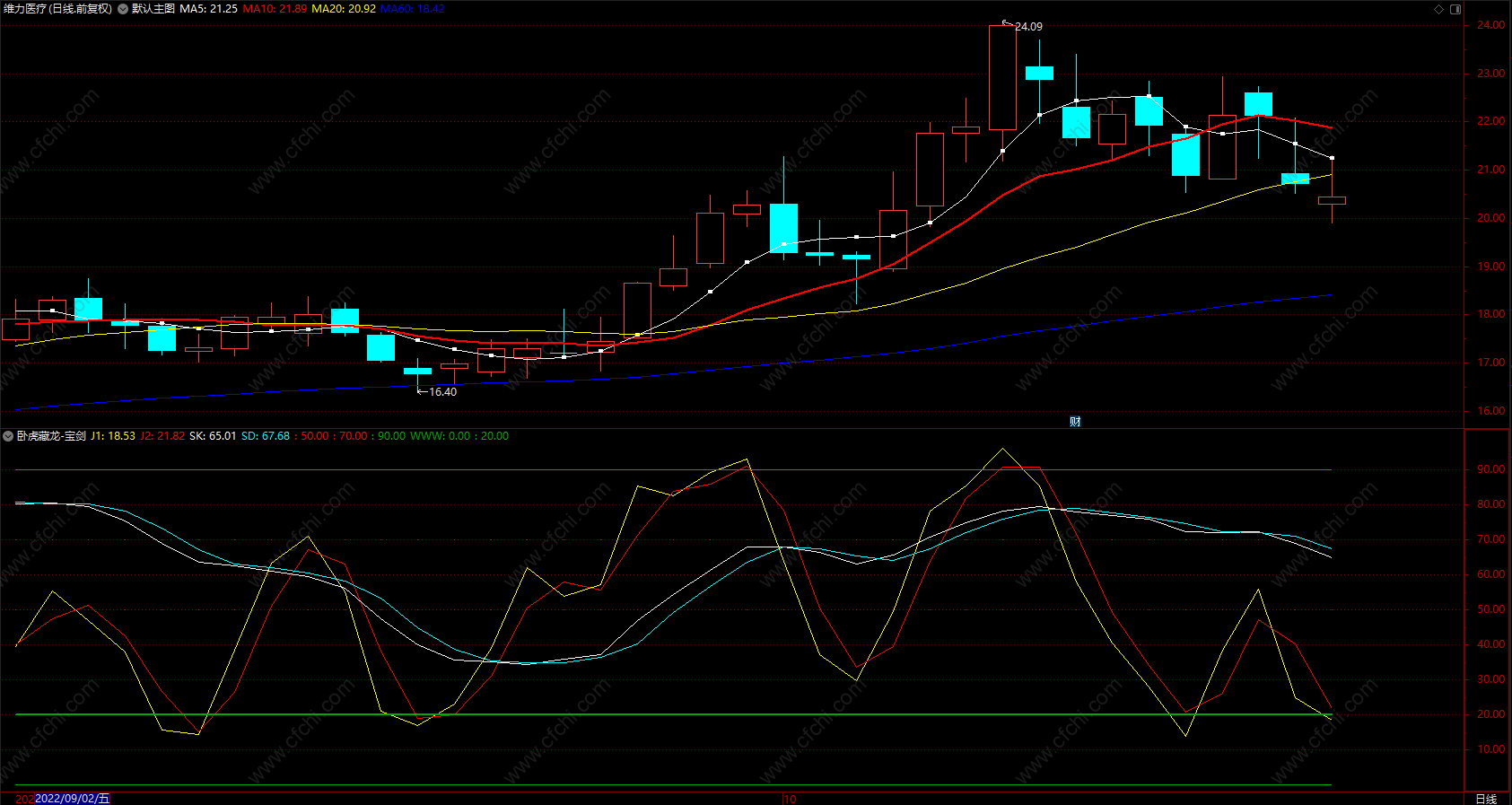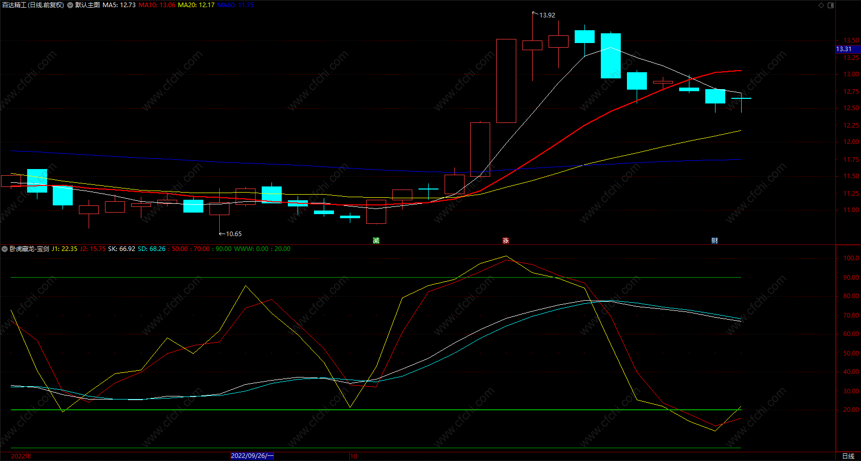 (卧虎藏龙-宝剑指标 通达信涨停趋势线指标公式 副图 无未来 源码)