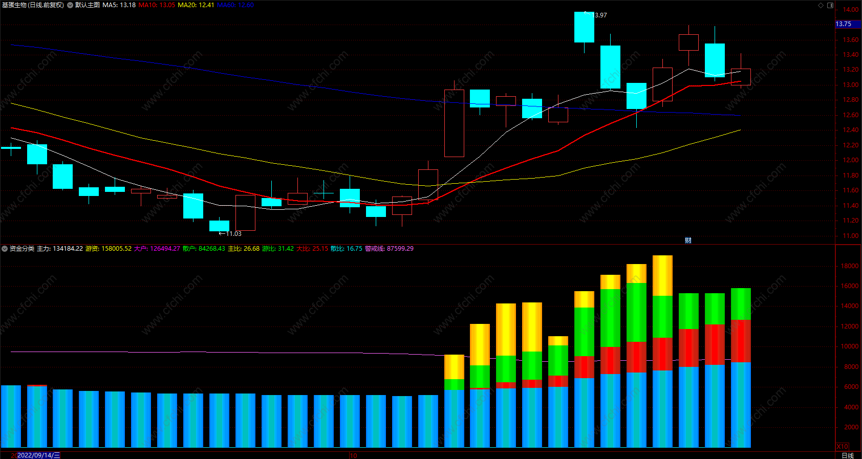 (资金分类指标 通达信股票流动资金副图指标 无未来 源码)