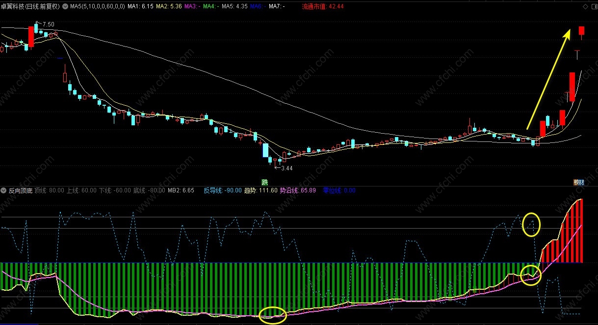 (通达信【反向顶底】副图指标,看趋势做波段得心应手!享受理想的看盘工具)