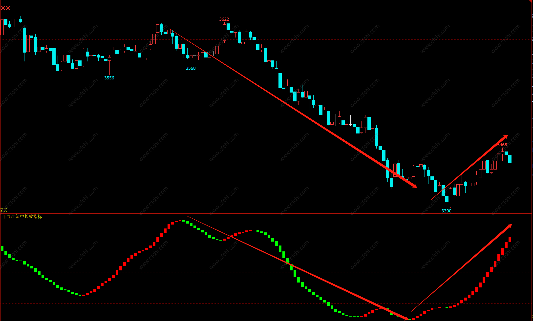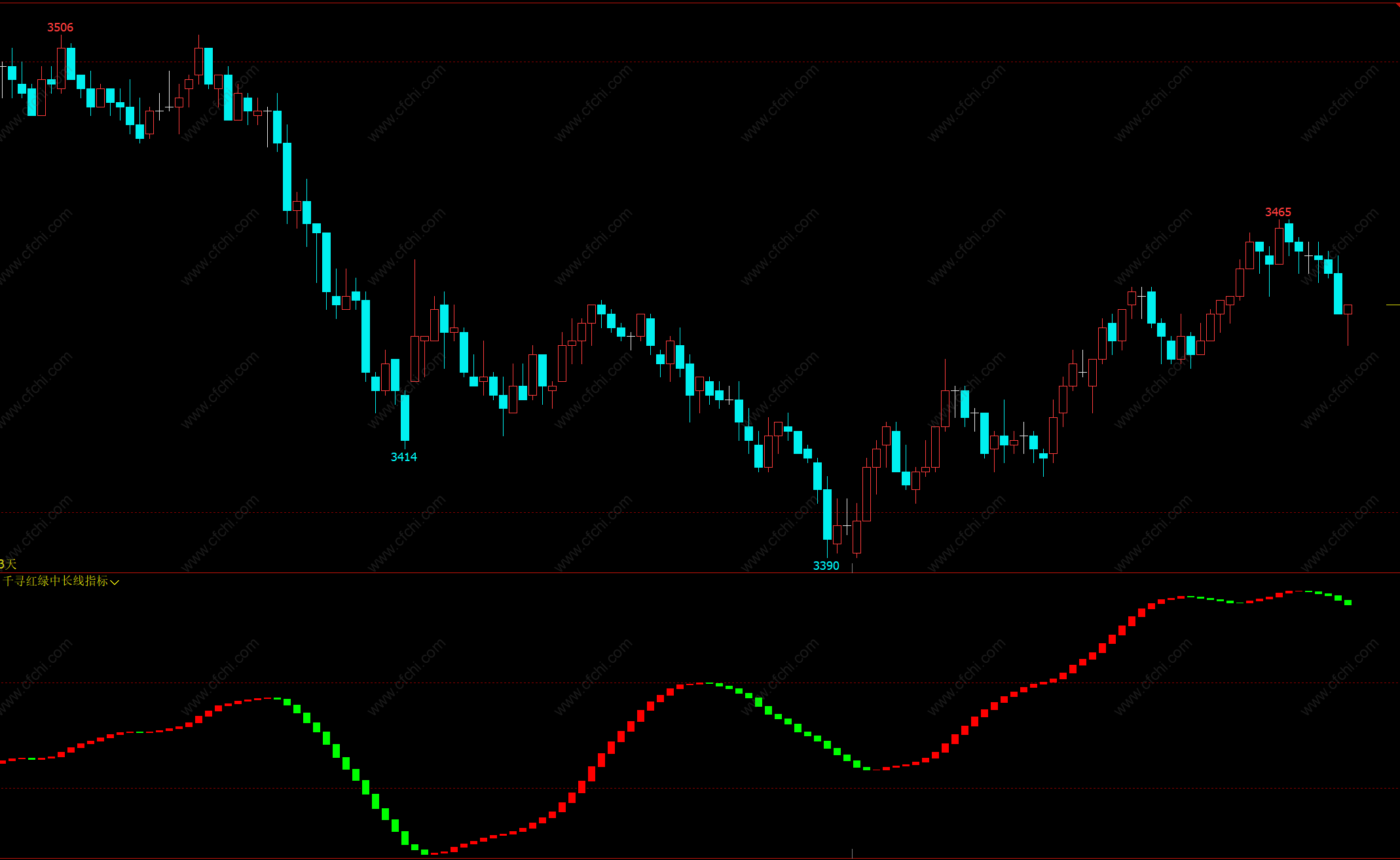 (【红涨柱中长线趋势转换指标】文华软件期货指标 文华财经指标公式源码 文华精准指标幅图)