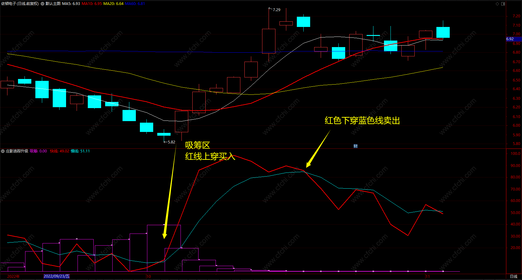 买点:红线上穿蓝线买入;