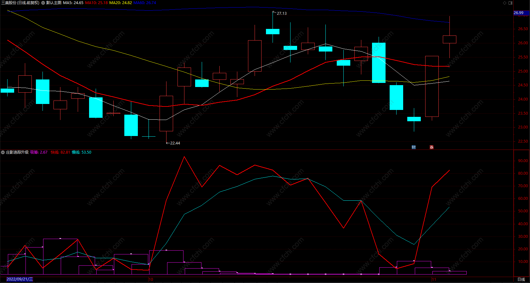 郑重声明:股市具有不确定性,个股走势是无法预测的。公式软件描述中的案例截图仅代表过去,仅供参考学习研究之用,不构成投资建议或未来保证,也并不能代表未来,依此操作,责任自负。股市有风险,入市需谨慎。