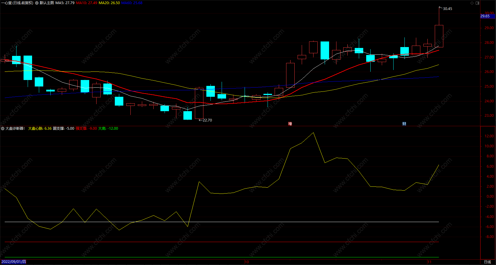 财富池指标公式网(www.cfchi.com)提醒您:指标公式是通过数学逻辑角度编写而来,仅是股票分析环节中的一个辅助工具,对股票选股效率和分析便捷上起到一定的作用,股市是具有不确定性和不可预测性的,请正常对待和使用指标公式!
