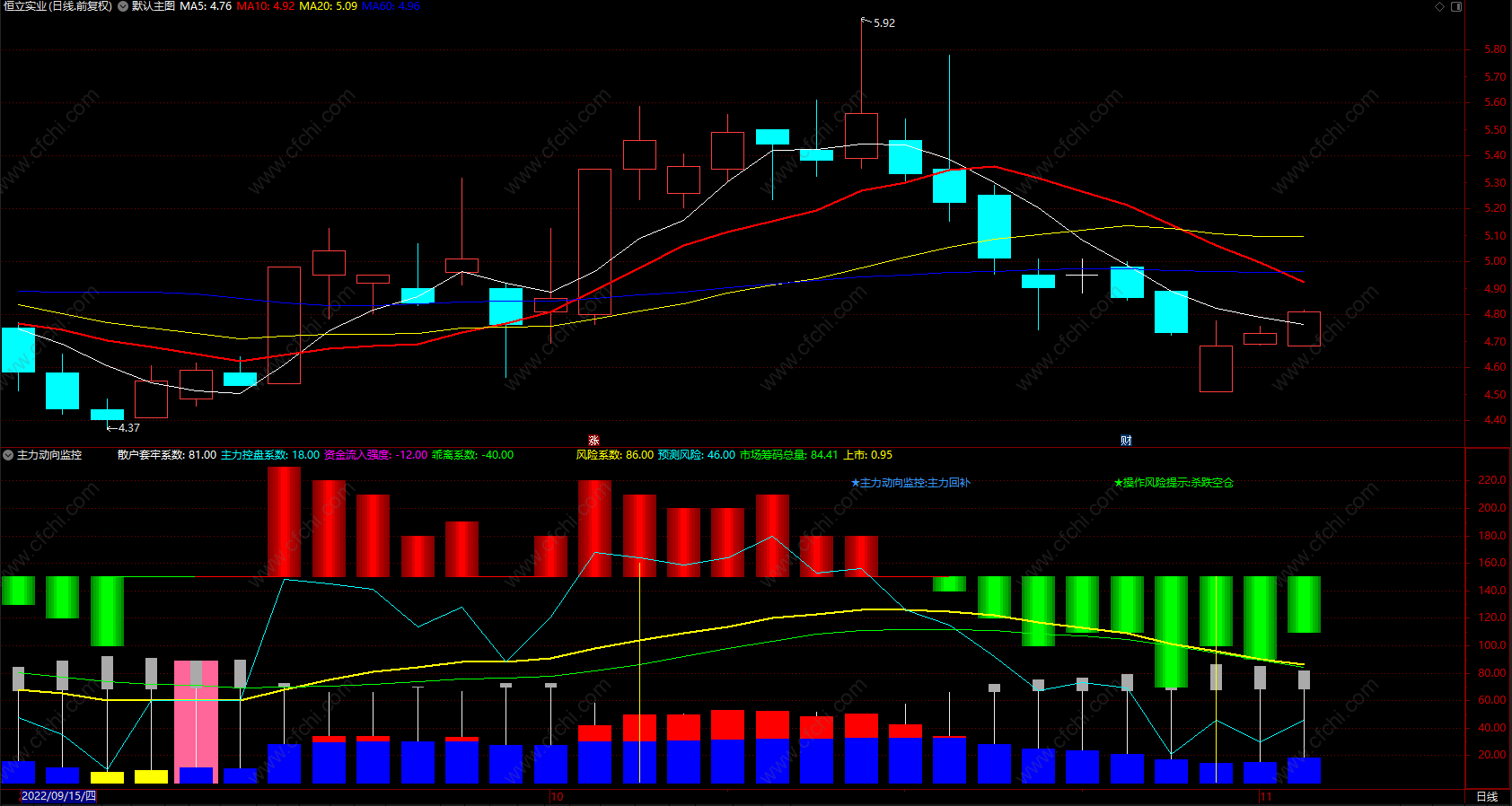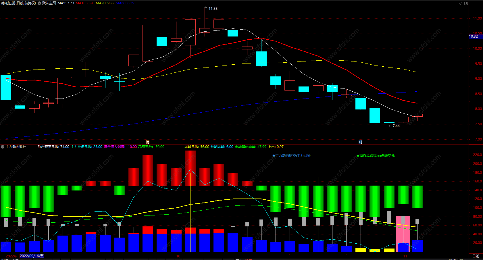 DRAWTEXT_FIX(T10,0.76,TS10,0,'★操作风险提示:盘跌减仓'),COLORWHITE;