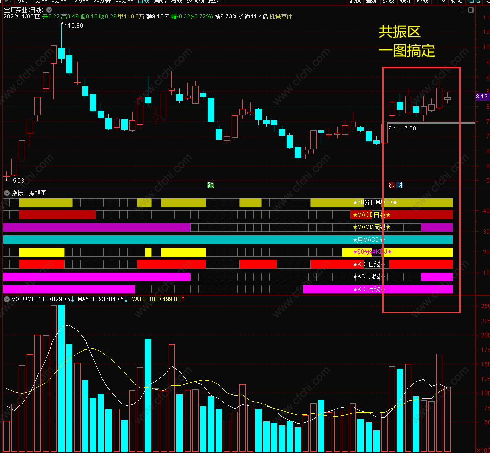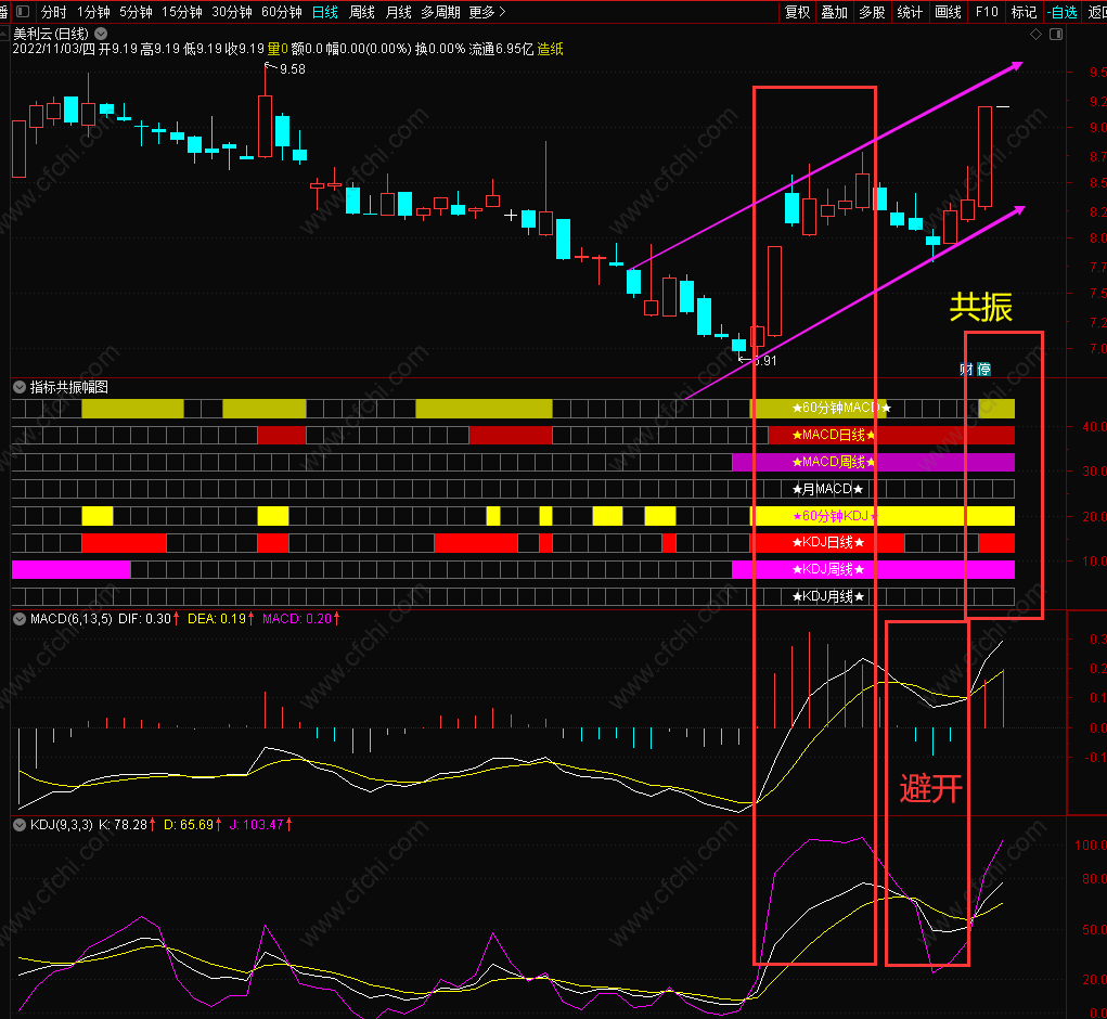 看画的通道。如果只是跟着日线做。那么是否有信心在下跌后上涨又进去吃肉?通过股票指标共振,就能比较清晰的了解,原来趋势还在,有博弈机会。