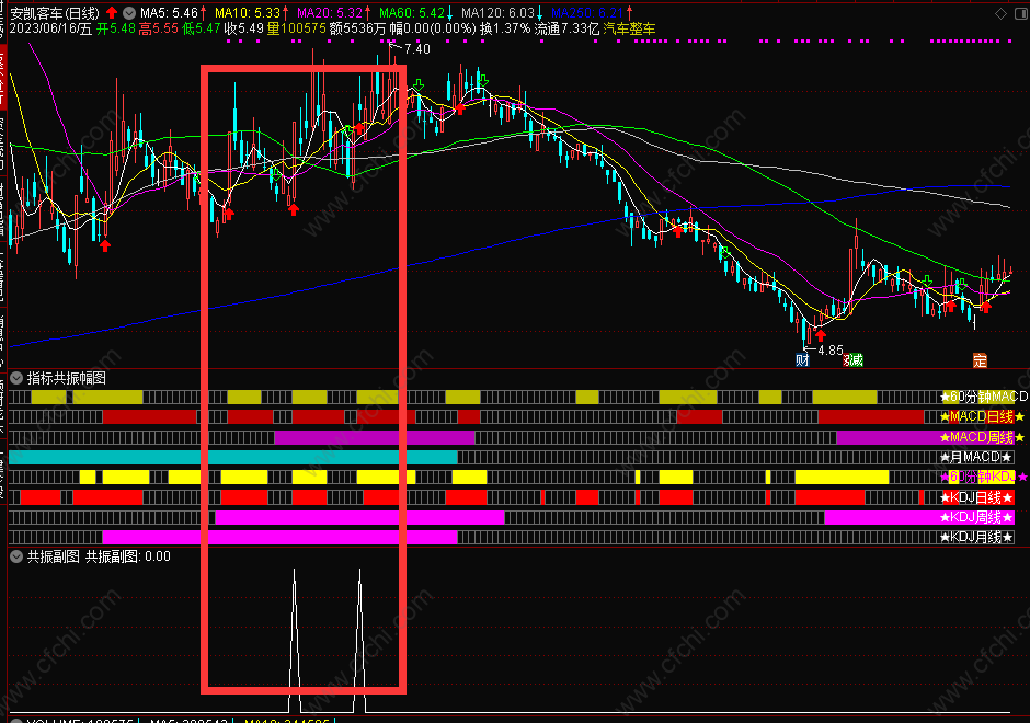 2、共振指标只是辅助,无买卖点,辅助使用的股友需要自己多多做研判,结合大盘环境和个股盘面分析。