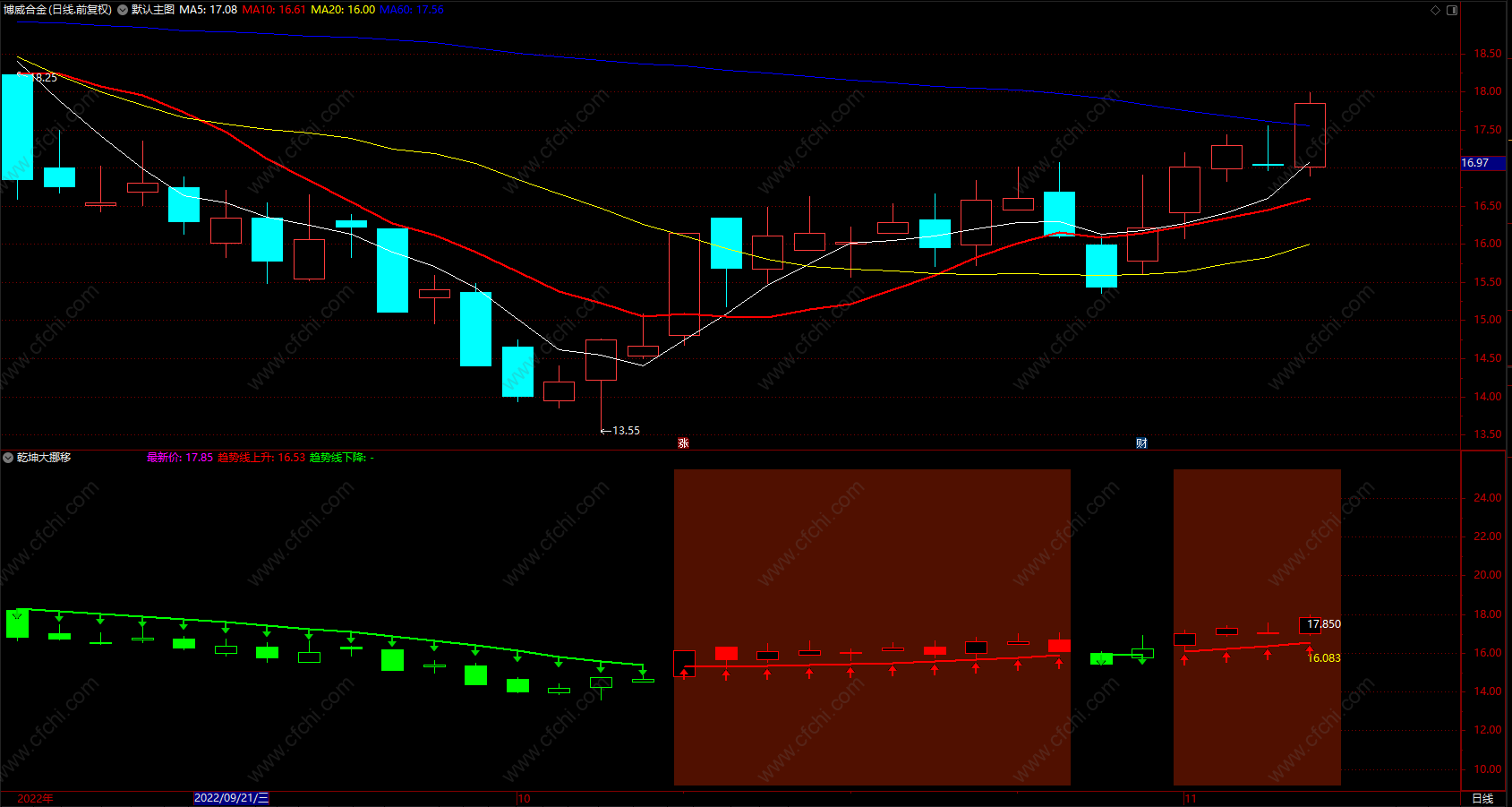 乾坤大挪移 通达信箭头多空趋势线买卖指标公式 副图 源码