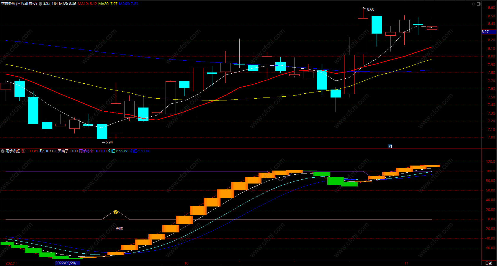 雨季彩虹 通达信股票涨跌预测指标 副图 源码