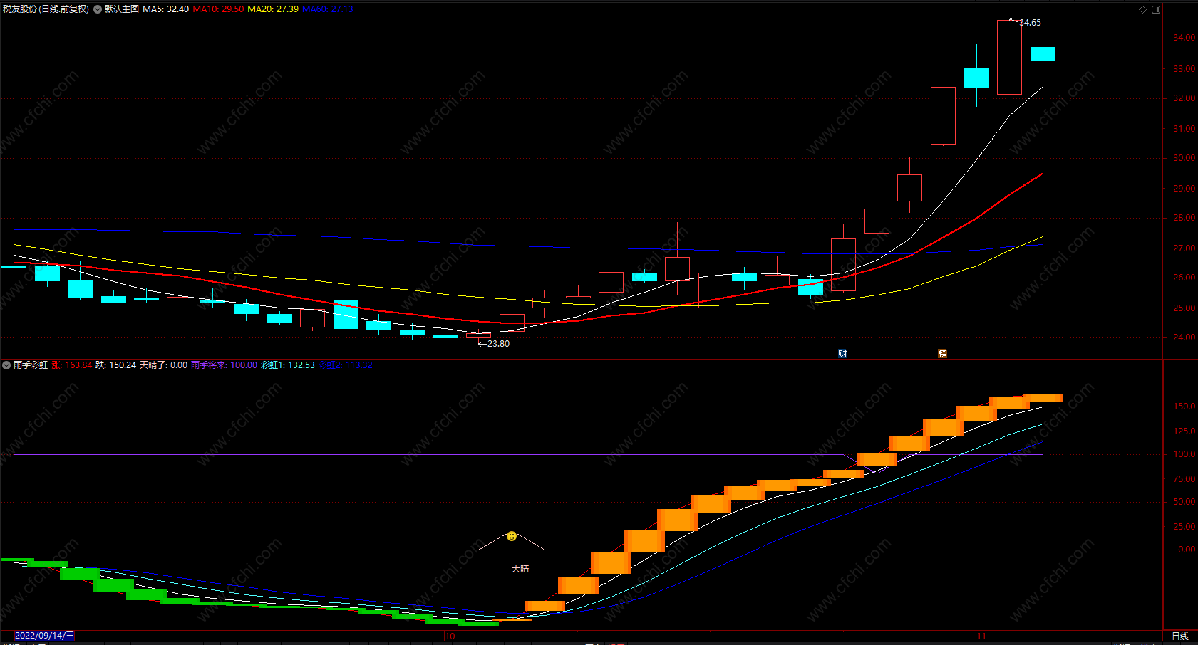 (雨季彩虹 通达信股票涨跌预测指标 副图 源码)