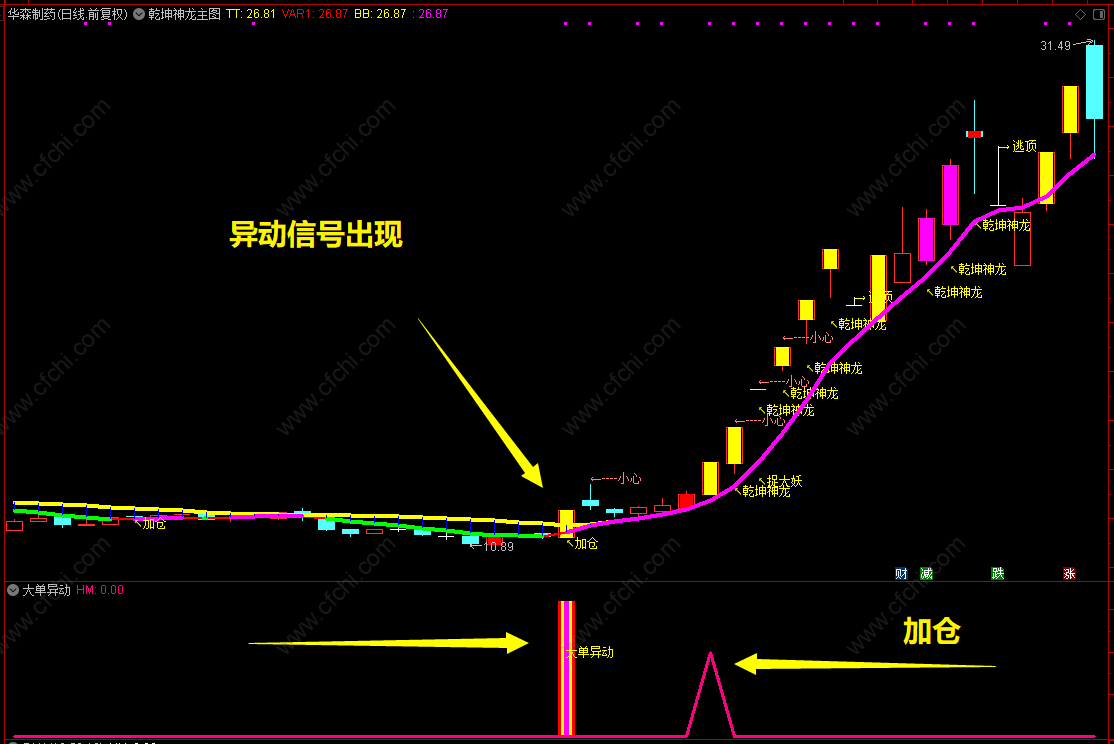 局部低位粉色三角形出现可大单介入,享受主力带来的福利!