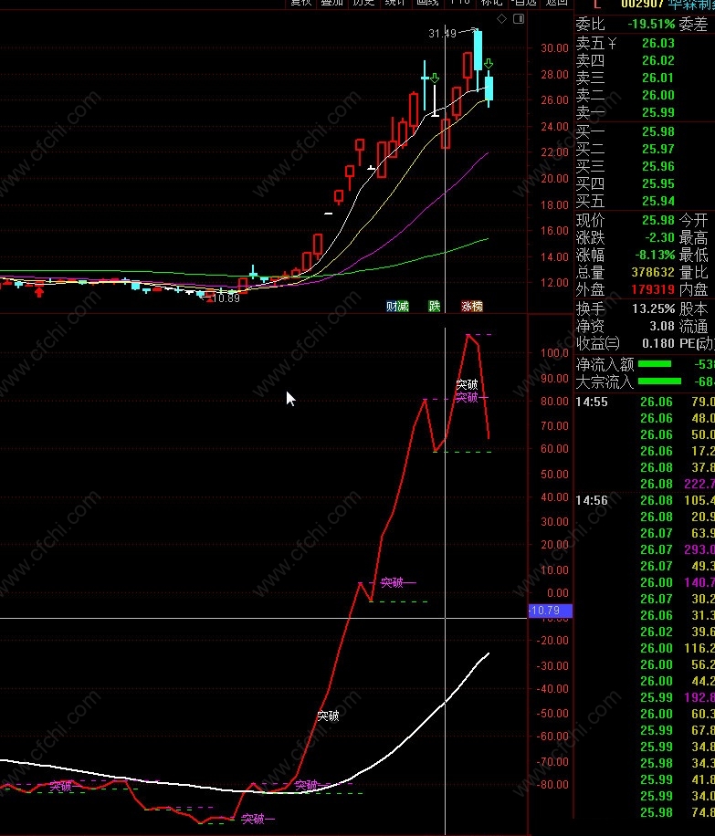 突破前高指标,价格突破紫色线都有一波不错的涨幅
