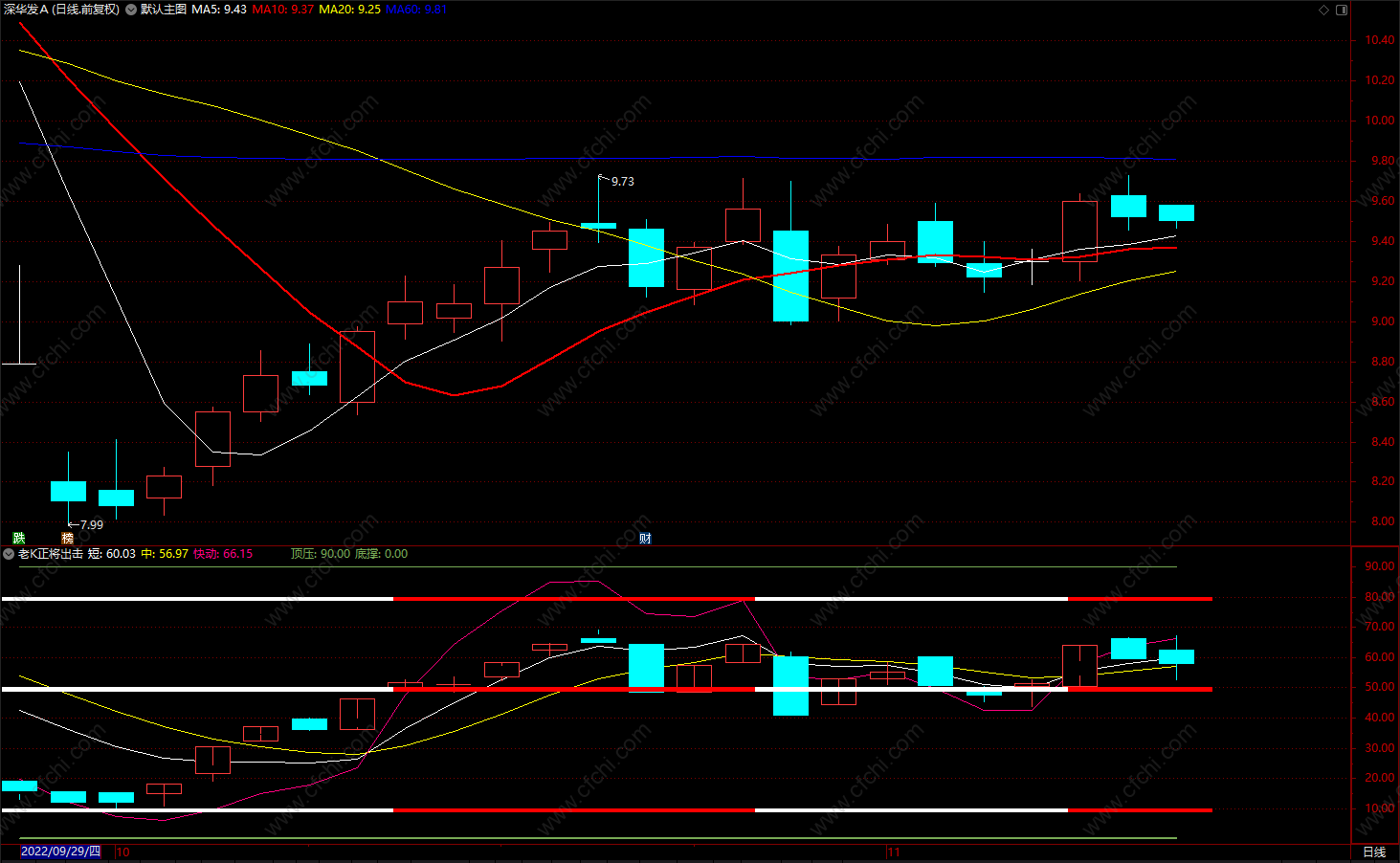 STICKLINE(短>0 AND 短-中<0,49,50,6,0),COLORWHITE;