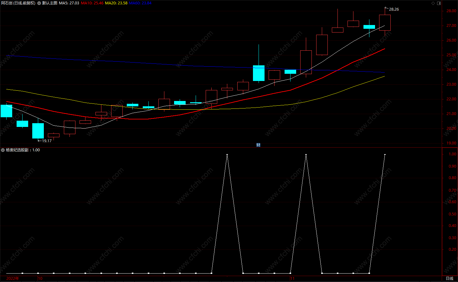 财富池指标公式网(www.cfchi.com)提醒您:指标公式是通过数学逻辑角度编写而来,仅是股票分析环节中的一个辅助工具,对股票选股效率和分析便捷上起到一定的作用,股市是具有不确定性和不可预测性的,请正常对待和使用指标公式!