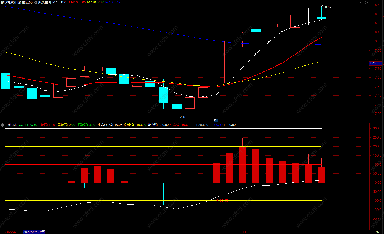财富池指标公式网(www.cfchi.com)提醒您:指标公式是通过数学逻辑角度编写而来,仅是股票分析环节中的一个辅助工具,对股票选股效率和分析便捷上起到一定的作用,股市是具有不确定性和不可预测性的,请正常对待和使用指标公式!