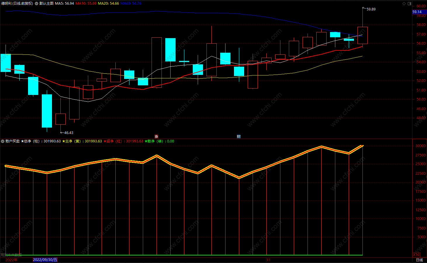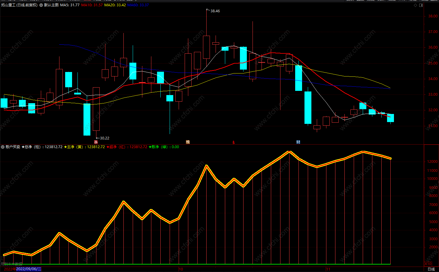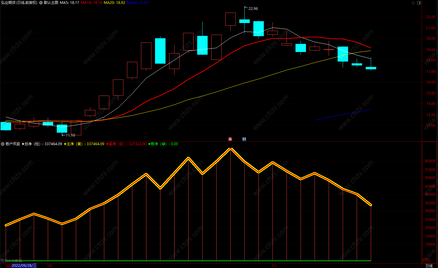 散卖:=IF((AMOUNT<(FINANCE(40)*0.005/100))AND(DCLOSE<=DOPEN),AMOUNT/10000,0);