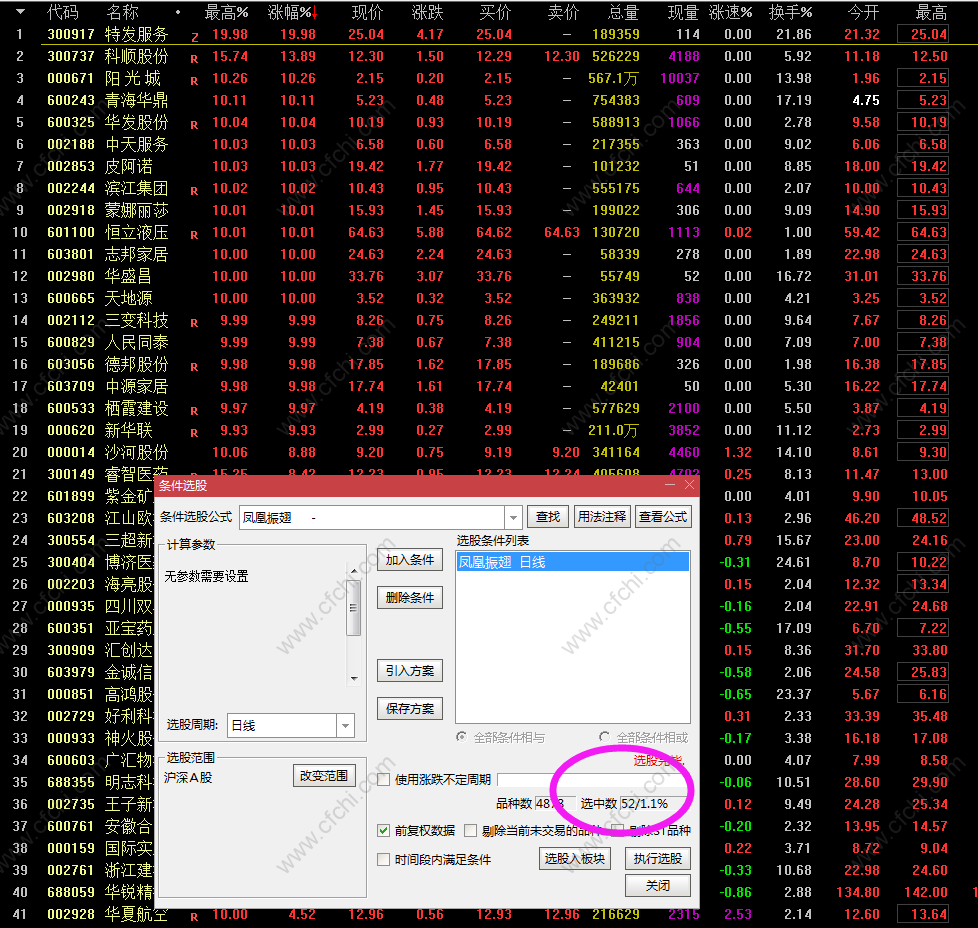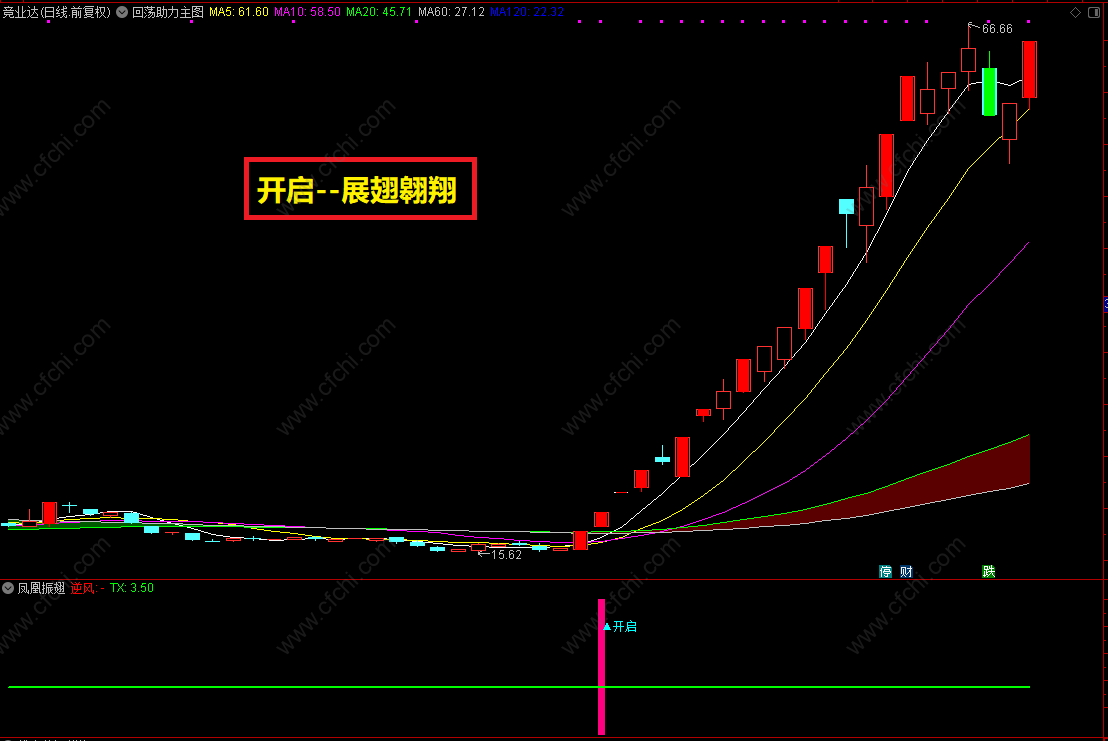 为方便大家把指标信号加入到自己的指标系统里,特把“开启”和“凤凰振翅”信号做成了选股。