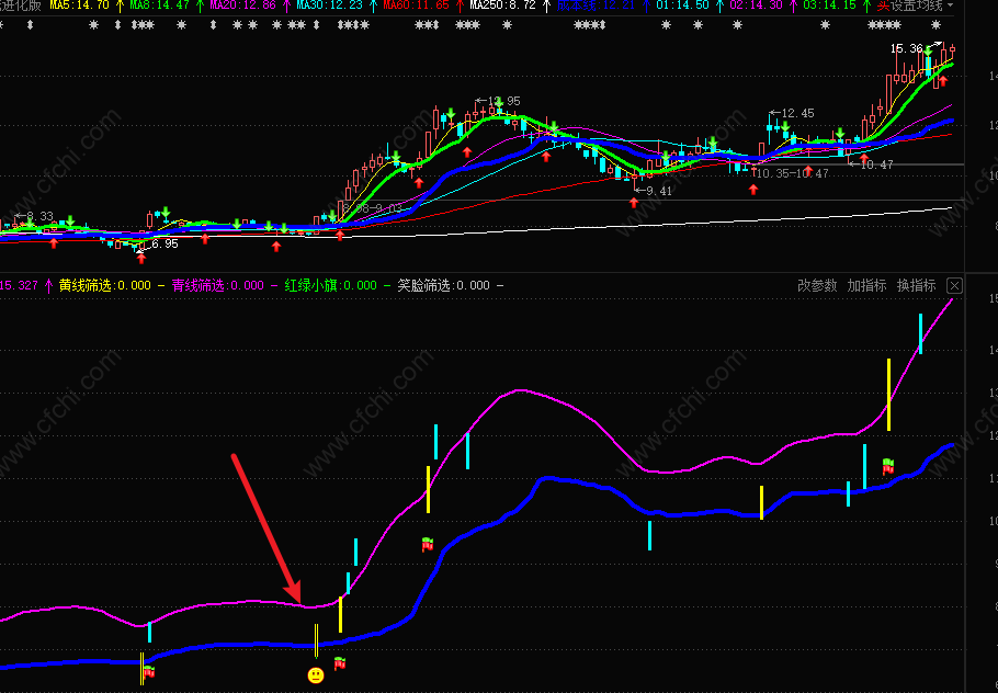 精华版:分时主力吸筹:增加了买入点提示,效果不错。手机电脑都可用。